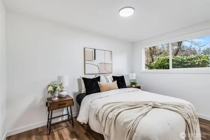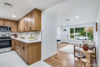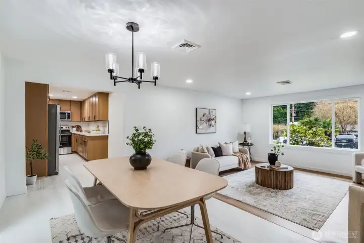 Welcome to this beautifully updated 3-bedroom, 1.5-bath rambler offering 1,200 sq ft of stylish, single-level living. Thoughtfully refreshed with modern accents throughout, this home features a stunning fireplace feature wall that anchors the living space and creates a warm, inviting focal point. Enjoy year-round comfort with both heating and air conditioning. The updated kitchen showcases contemporary cabinetry, clean lines, and a fresh, functional layout perfect for everyday living and entertaining. Move-in ready with tasteful upgrades and timeless appeal, the perfect blend of modern design and cozy charm. Close to restaurants, parks, freeway, shopping and entertainment.