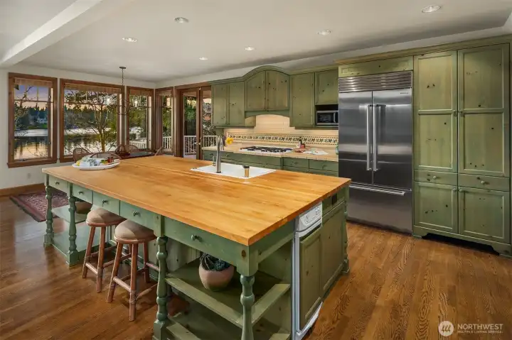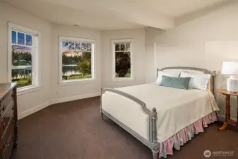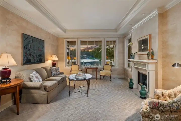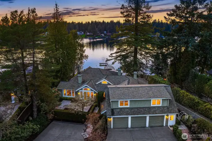 Coveted west-facing waterfront in sought after Yarrow Point! An exceptional Paul Saad custom home built with high quality materials and craftsmanship. A timeless design featuring distinctive Northwest artists details that add warmth and character throughout. Excellent floorplan with seamless indoor-outdoor living. Gracious living and dining rooms. Wonderful epicurean kitchen with striking butcher block island & custom cabinetry complemented by a generous dining area that flows seamlessly into the dramatic family room with river rock fireplace. Expansive windows showcase the views from almost every room. A wonderful office with warm wood accents, a gas fireplace, built in desk and shelving. Beautiful main floor primary suite with custom built-ins, gas fireplace and spacious 5-piece bath. French doors lead to the expansive view deck. Huge lower level with recreation room with beer tap, Sub-zero and custom cabinetry. Another flexible space provides endless possibilities for games, entertaining, hobbies, and everyday living. Spacious 1,100+ bottle wine cellar. Above the 3 car garage, is a versatile space featuring a bedroom, bathroom, kitchen, and family room. Perfect for guests, offering privacy, comfort and a peek a boo view of the lake. Beautifully manicured gardens. A rare opportunity to experience Northwest living at its finest.