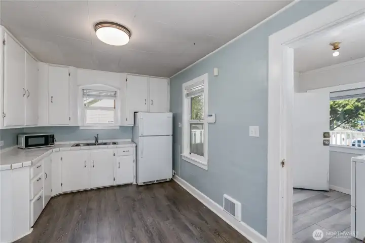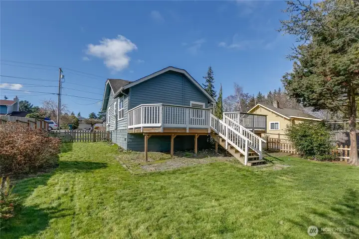 Welcome to this cozy one level home in a prime South Everett location! 2-bedroom, 1-bath , offering 788 sq ft of comfortable living space with tons of potential, all situated on a fenced 6,970 sf lot. Spacious living room w/ wood flooring, two good sized bedrooms, and a full bath with tile flooring & free standing tub. The large kitchen features ample cabinet and counter space & laminate flooring. A separate, oversized utility room adds great functionality. Step outside to an oversized, full-length deck overlooking a large, fully fenced backyard with an outbuilding—ideal for gardening, hobbies, or future possibilities. Endless potential and nicely landscaped, this home is a perfect place to make your own. Live here while you remodel or even possibly build your DADU ( buyer to verify with City of Everett guidelines, zoned UR4 allowing for many future development possibilities) Conveniently located near local schools, Boeing, restaurants, and more! Whether you're searching for your first home or great rental property, this one checks all the boxes.
