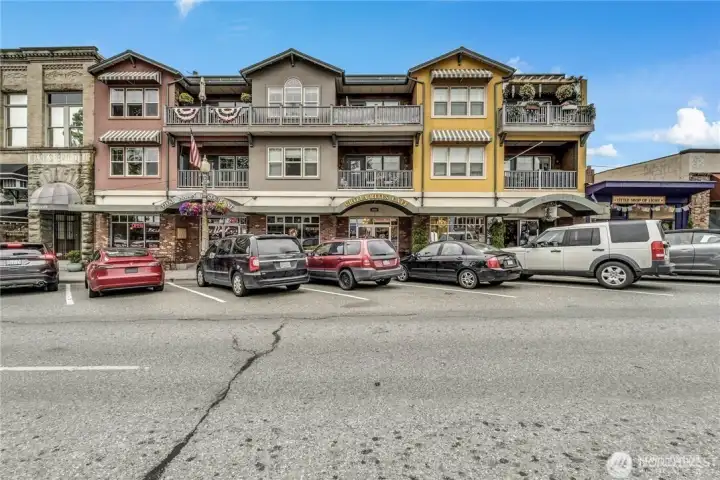 Welcome home to this beautifully located 3-bedroom, 2-bath condo in the heart of Historic Downtown Snohomish! This is a rare opportunity to own in one of downtown’s most sought-after buildings. Step inside to a large open-concept living room and kitchen featuring many upgraded finishes, perfect for entertaining or relaxing at home. Enjoy a spacious primary suite complete with a connected ensuite bath and cozy fireplace, offering the perfect retreat at the end of the day. This beautiful condo is situated on the top floor, featuring a private balcony facing First Street. An ideal spot for taking in everything that makes Snohomish so special. Watch parades stroll down the street, colorful hot air balloons drift across the sky, and skydivers descend in the distance, all from the comfort of your own home! With elevator access for added convenience, you can simply pop out of the building and find yourself steps away from some of the best dining, boutique shopping, and vibrant local events Snohomish has to offer. Enjoy the added convenience of two covered parking spaces one with EV charging and dedicated storage, providing both ease and extra room for all your needs. This home offers the ideal blend of urban charm, lifestyle, and ease of living in one of Washington’s most beloved small towns.