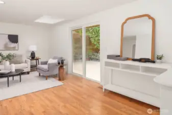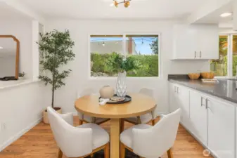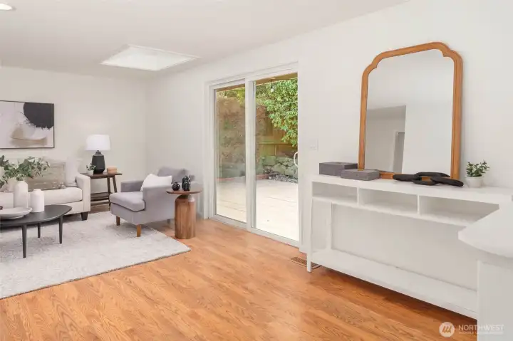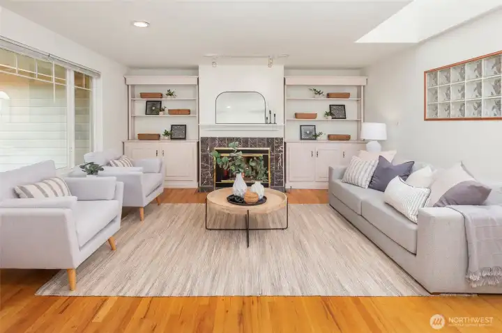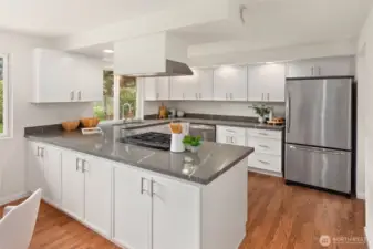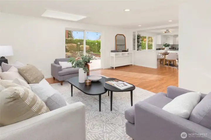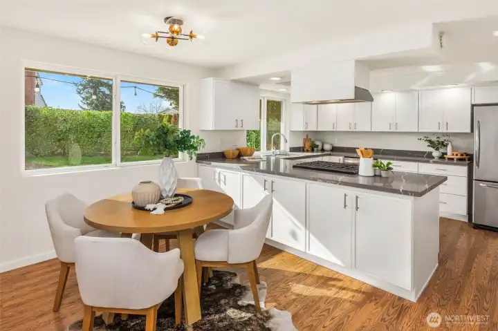 Beautifully refreshed rambler nestled in one of Kirkland’s most sought-after communities. A charming front porch and manicured lawn create inviting curb appeal, welcoming you into a thoughtfully designed, easy-flow layout. The light-filled kitchen has been freshly remodeled with all-new appliances, cabinetry, and sleek countertops. You’ll find the rare advantage of two distinct living spaces, including a cozy gathering room with fireplace and another with access to the backyard. Step outside to a spacious, fully fenced backyard surrounded by mature landscaping, offering exceptional privacy - perfect for outdoor entertaining, gardening, or simply relaxing. Hardwood floors run throughout, enhanced by fresh interior paint and tastefully updated bathroom details. Three generously sized bedrooms, including the primary suite, are complemented by a full bath, a ¾ bath, and a versatile mudroom space that is great for storage, hobbies, or additional organization. Enjoy access to the Kingsgate Community Center with amenities including swimming, pickleball, tennis, and a play/picnic area. Just moments from The Village at Totem Lake, additional shopping + dining options, and convenient freeway access. Highly regarded Lake Washington schools. With the ease of one-level living and an unbeatable location, this home offers exceptional value and an effortless lifestyle.