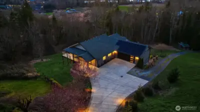 Presenting a timeless Hollywood Hill residence with sweeping views over Woodinville Wine Country minutes from wineries, shops and the contented bustle of the best lifestyle in the PNW. Designed for busy executives with room to work, play and grow (partially finished 1400 SF Daylight basement), privacy and comfortable daily living. Stunning sunsets, grand entertaining terraces, & a peaceful, private setting that's hard to find. All new floors, lighting, paint, Solar Panels, Tesla Power Walls, Starlink and high-tech fiber, so your startup can be virtually off grid. The heart of the home is a grand entertaining kitchen with sliding glass walls that open to glorious views over the Snoqualmie River Valley. Two dedicated offices, bonus rooms, and four large bedrooms make this a versatile home for business or play. large windows with plantation shutters balance natural light with privacy, while unfinished spaces offer a practical opportunity for future expansion or custom storage. Grounded by a neutral palette and warm wood accents, this well-maintained property combines modern convenience with the flexibility to grow with your needs. It's the best of the Woodinville lifestyle in a versatile, modern home.