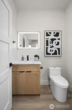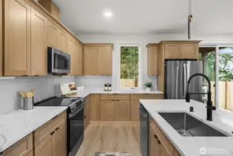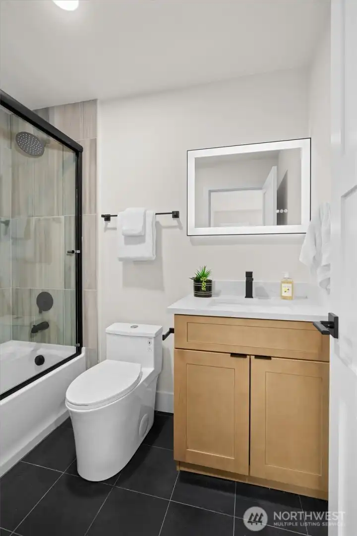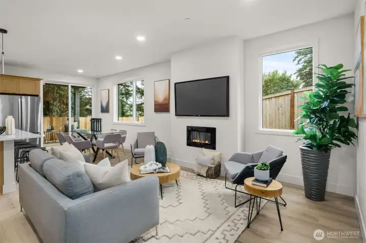 Stunning new construction by Holden Development Group in sought-after South Juanita. Thoughtfully designed with modern elegance and quality craftsmanship, this light-filled home features an open-concept main level ideal for everyday living and entertaining. The gourmet kitchen offers a spacious island with seating, premium stainless appliances, sleek cabinetry, and generous prep space, flowing seamlessly into the dining area and inviting living room. Upstairs, retreat to the luxurious primary suite complete with a spa-inspired bath and generous walk-in closet. A second spacious bedroom, full bath, and conveniently located upper-level laundry enhance functionality and comfort. Enjoy a private fenced yard and patio perfect for relaxing or hosting gatherings, plus one EV-ready parking space. Ideally located near parks, beaches, Juanita Village, and just minutes to downtown Kirkland with easy access to major tech campuses. Top-rated Lake Washington School District, this home blends modern style, smart design, and an unbeatable Eastside location.