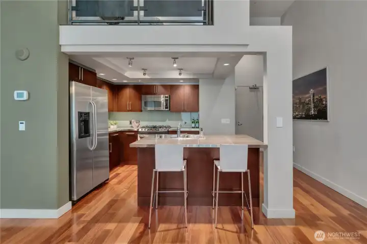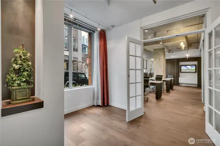 Stunning Live–Work Loft w/European elements in the Heart of South Lake Union. A truly exceptional space, offering refined finishes & an exquisite, light-filled living environment. Formerly operated as the Hedges Family Estate Winery tasting rm, this unique residence features a private 1Br Loft residence+ above, w/a commercial office-retail workspace, workstations, & conference rm (non-conforming) below, creating a rare opportunity for flexible residential &/or commercial w/pedestrian frontage. Distinguished materials include custom limestone shelving sourced from Burgundy, designer light fixtures from Germany, heavy glass doors, & includes a premium sound system. The space offers 2 private entrances, direct street access or entry through the building lobby w/24/7 concierge service allowing seamless separation of living & working environments. Use the space as-is or convert it into a spacious single-family residence. Located w/in the coveted 2200 Westlake mixed-use center (Whole Foods, BofA, 1 Hotel Seattle, Luminous Yoga, Queen Bee Salon/Spa) this live–work townhouse delivers luxury condo living w/soaring ceilings, dark hardwood flrs, expansive windows, & immediate access to world-class amenities: 16 seat theater, fitness ctr, game rm, resident lounge, rooftop terrace, concierge. The lower level features its own entrance off 9th Avenue, ideal for entrepreneurs or professionals seeking convenience, privacy, & style. Included: Gar pkg, storage, some furnishings/media equipment.