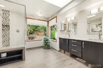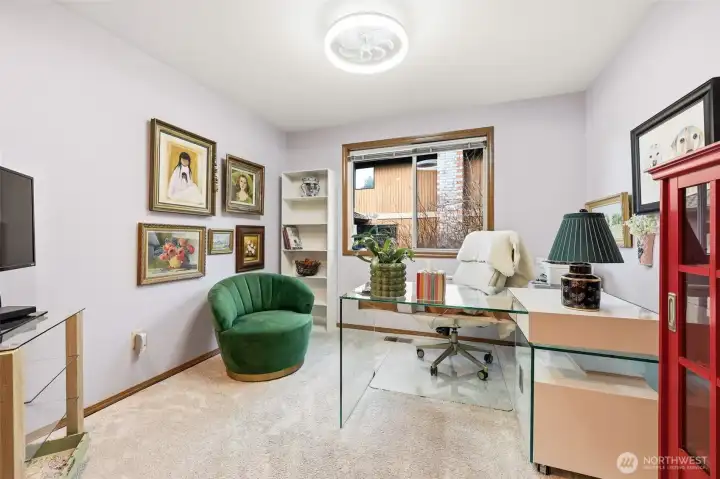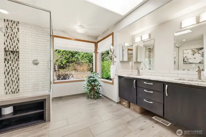 Tucked within the beloved Creek Ridge community, this beautifully cared-for rambler offers effortless main-level living and a peaceful connection to nature. Set on an expansive, lush lot with a gentle running creek, the backyard feels like your own private oasis, complete with a fully fenced yard, wildflower garden, and a spacious deck perfect for slow mornings and summer evening gatherings. Inside, the newly remodeled kitchen shines with high-end finishes, custom cabinetry, and a beverage cooler, flowing into warm living spaces with remote gas fireplaces. A light-filled office/ den space perfect for a craft room or working from home. The serene primary suite features French doors to the garden, a skylit en-suite, and a spa-like walk-in shower—thoughtfully updated and lovingly maintained throughout