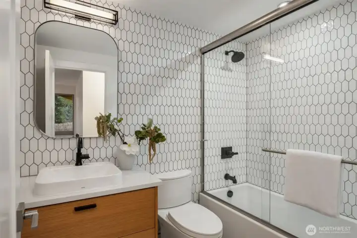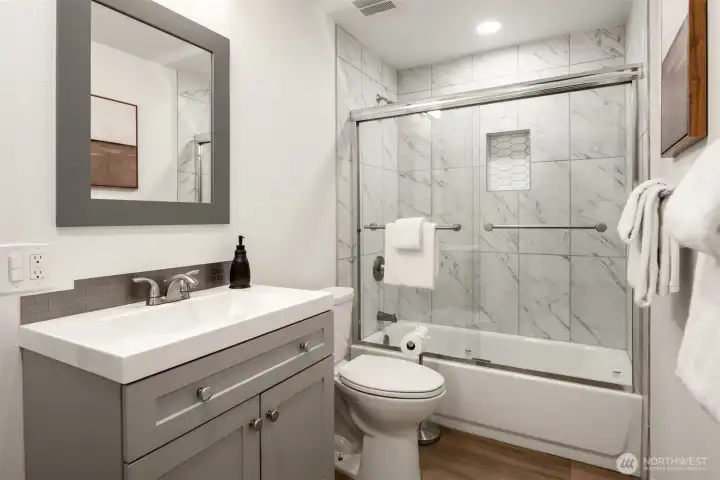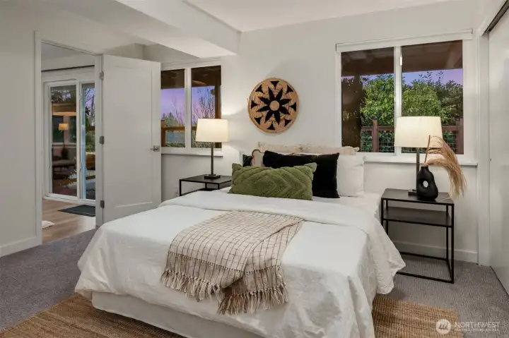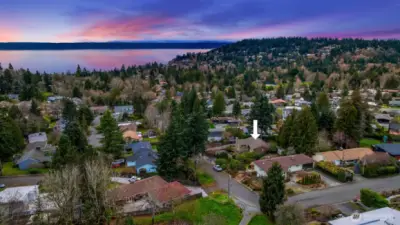 Set on a sunny 15,000 SF lot in Normandy Park, this inviting home offers westerly views of the Olympic Mountains & Puget Sound. The open living room features generous vaulted ceilings, a gas fireplace, & south- & west-facing windows that brighten even the dreariest PNW days. The updated kitchen offers ample storage, granite counters, & stainless appliances. The open dining area enjoys sunset views & French doors to the deck. The main-floor primary bedroom includes a walk-in closet plus a second full closet, along with an expanded en suite bath featuring double sinks & a curbless shower. Two additional bedrooms & a full bath round out the spacious main floor. The lower level offers exceptional flexibility with a remodeled second kitchen, bedroom, full bath, dining area, & family room—all with its own exterior access, an ideal setup for long-term guests or multigenerational (MIL) living. Laundry is conveniently located on the main floor with a second laundry downstairs. Outside, enjoy a roomy deck built for sunsets & summer dinners, plus a large fenced yard made for play, gardening, or dogs on the run. Updates include Hardi siding, newer windows, new water line, updated flooring & baths, interior paint, a heat pump with A/C, & EV charging, plus ample parking with a two-car garage & large gravel pad with lower-level access. A special home in a special pocket of Normandy Park, with Nist Park just kiddie-corner. Pre-inspected.