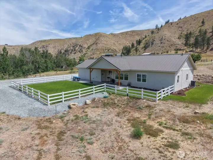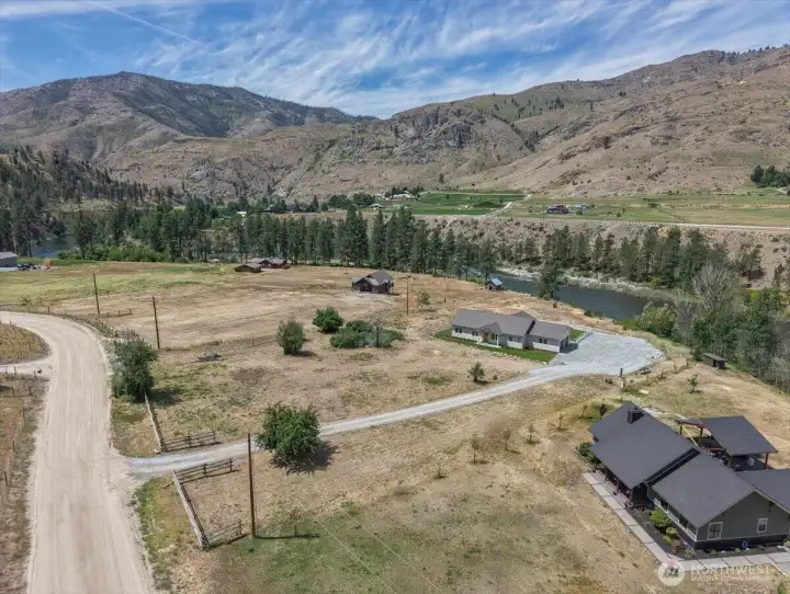 Stunning custom rambler on 3 acres with 273’ of Methow River frontage and sweeping mountain views from every window. Stunning river views throughout the home. A private trail leads to your own sandy beach, perfect for fishing, relaxing, and soaking in nature. The 3-bedroom, 2.5-bath home features 9’ ceilings, white oak engineered hardwood, slate tile, quartz counters, and a chef’s kitchen with Wolf double oven, Wolf induction cooktop, and custom walk-in pantry. Nicely landscaped with UG sprinklers, white vinyl fencing, fruit trees, and mature pines. Includes covered patio, insulated 2-car garage with storage loft, and two high-producing wells (one in use). Turnkey living in a peaceful,scenic setting. Luxury meets nature!