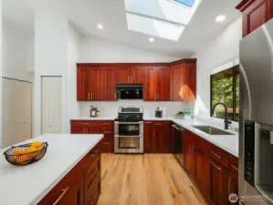 Set on a quiet cul-de-sac in sought-after Somerset, this beautifully maintained home offers a smart, highly functional layout with no wasted space, exceptional natural light, and a rarely available oversized 0.57-acre lot. Southern exposure fills the living room and many of the bedrooms with direct sunlight, while vaulted ceilings and skylights enhance the bright, airy feel. Enjoy Newcastle golf course views and a truly livable backyard that comes alive with different blooms throughout the summer. Rare for the neighborhood, the expansive lot offers outstanding flexibility for outdoor living, play space, expanded gardens, or future possibilities—buyer to verify. Coveted Somerset Elementary, Tyee Middle, and Newport Senior High complete the package.