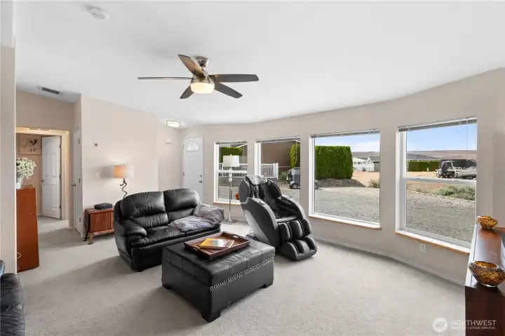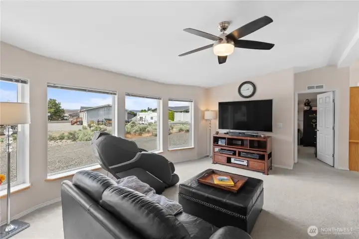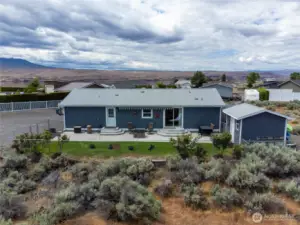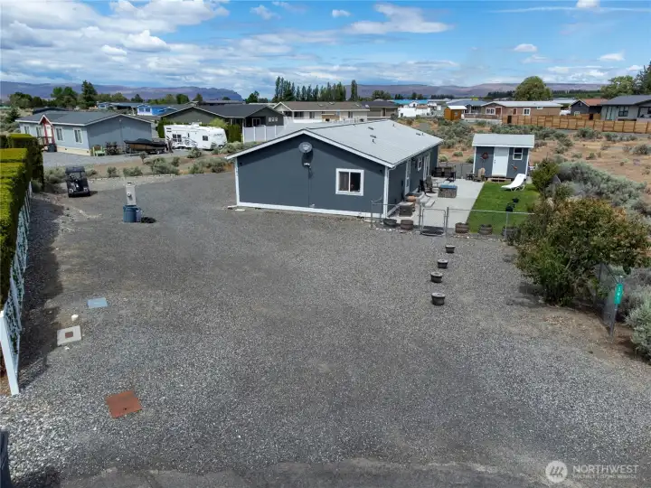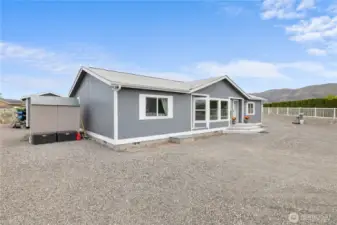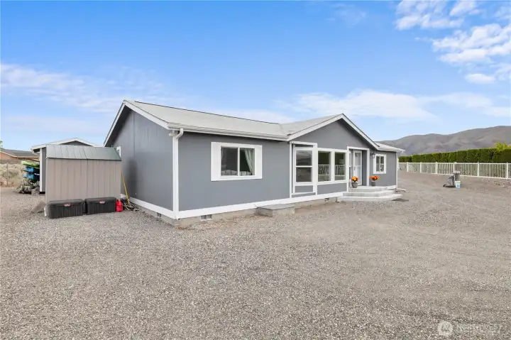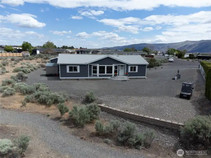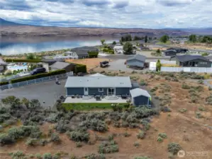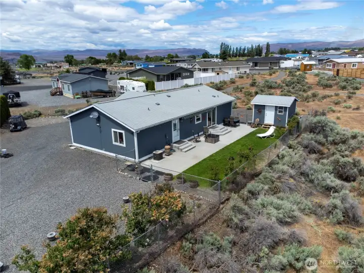 Charming Home in Desert Aire with River Views! Tucked at the end of a quiet cul-de-sac, this beautifully maintained 3-bedroom, 2-bath home offers privacy, comfort, and scenic Columbia River, mountain, and territorial views. Fresh interior and exterior paint create a bright, inviting feel, while vaulted ceilings, skylights, and expansive windows fill the living spaces with natural light. The open-concept layout features a spacious living room, dedicated dining area, and a well-appointed kitchen with walk-in pantry and all appliances included—truly move-in ready. The primary suite offers a private bath and generous closet space, creating a relaxing retreat. Set on a level lot, the fully fenced backyard is low maintenance and ideal for entertaining, complete with patio space, sprinkler system, storage shed, and RV parking with hookups. There’s even room to add a future shop. Enjoy direct access to walking paths leading to the Columbia River, park, pool, golf course, airfield, and other Desert Aire amenities. Community water, septic, forced air heat with heat pump, and central A/C add year-round comfort. A rare opportunity to enjoy river views, outdoor recreation, and peaceful living all in one.