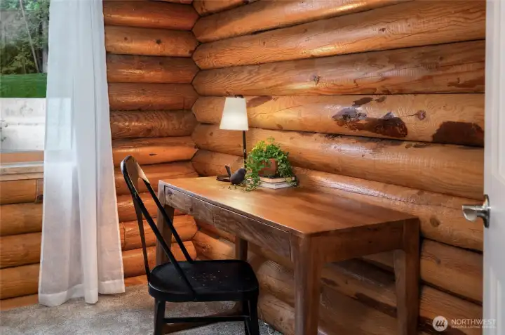 This fully renovated custom log home offers the perfect blend of rustic charm and modern design, set on two private acres just minutes from town. This thoughtfully cleared property features a new terraced lawn and mature evergreens that provides the perfect blend of both natural light and privacy. A short walk leads to Bottomless Lake, a 7.5-acre spring-fed lake with approximately 60 feet of shoreline to enjoy. Inside, the dramatic great room showcases vaulted ceilings and a floor-to-ceiling stone fireplace. Engineered hardwood flows throughout the main level, leading to a stunning new kitchen with quartz countertops, waterfall-edge island, and stainless appliances. The main floor also includes a mudroom, office, two bathrooms, dining room, and breakfast nook with access to an expansive composite deck overlooking the yard. Upstairs, a grand staircase opens to a lofted family room. The spacious primary suite features an en suite bath and walk-in closet. Major updates include a new metal roof, electrical, plumbing, furnace, and A/C. Connected to natural gas and Skagit PUD water. Detached shop and covered carport complete this rare opportunity to enjoy privacy, recreation, and modern comfort in one exceptional property.