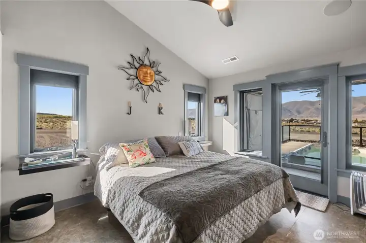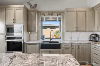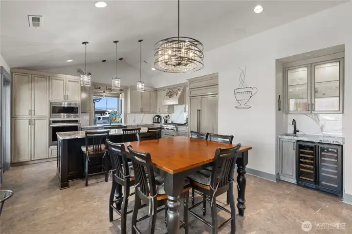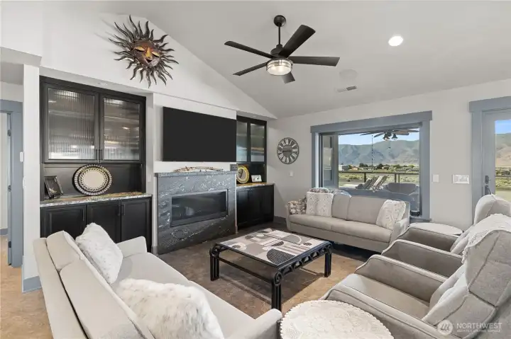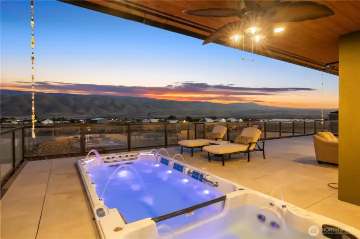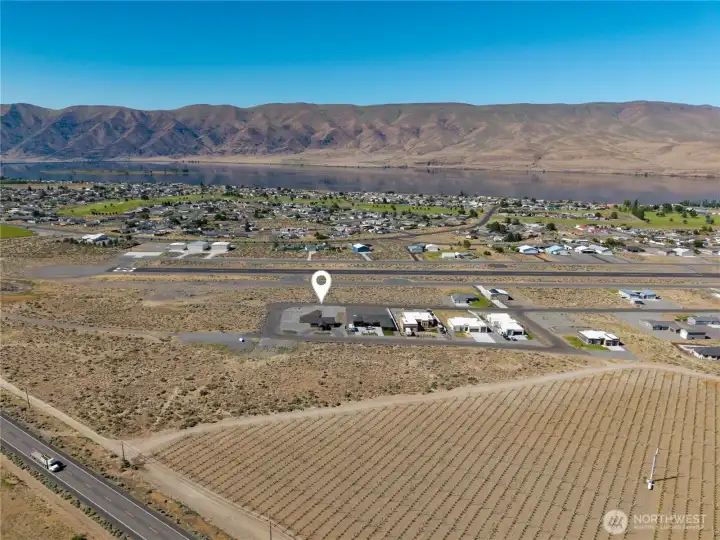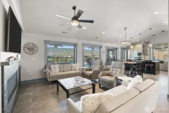 Experience elevated living in Desert Aire on a premier .61-acre corner lot with sweeping views of the Columbia River, surrounding mountains, golf course, and airstrip. This 2,210 sq ft custom home showcases vaulted ceilings, built-ins, heated tile floors, new carpet, and a thoughtfully designed open layout ideal for entertaining. The chef’s kitchen is a true showpiece with granite countertops, oversized island with seating and storage, Sub-Zero refrigerator, double ovens, warming oven, and premium appliances. Walls of windows frame the view and fill the great room with natural light. The spacious primary suite offers private deck access, walk-in closet, and a stunning spa-inspired bath. Downstairs, enjoy flexible living space perfect for guests, media, or recreation. The 1,868 sq ft attached shop is a rare find, featuring two 50-ft bays plus a 32-ft bay, ideal for RVs, boats, or toys. Three RV hookups, garage drains for year-round car washing, security cameras, and a built-in speaker system add exceptional functionality. Outdoor living shines with an expansive covered patio, cooling misters, swim spa, and Alexa-controlled lighting—perfect for sunset evenings overlooking the river. Community amenities include golf, airfield access, boat launch, trails, and more. Luxury, space, and views—this one truly has it all.