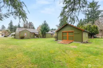 The most charming home in West Olympia on over 1/3 acre! Lovingly maintained by the same family for over 60 years, you will find thoughtful updates, original hardwood floors, newer appliances & fixtures, new interior + exterior paint & more! Garage features "office" set up with new electrical panel. Oversized shop w/ attic space w/ 220 power "could" be converted to an ADU, or used as workshop, yoga + art studio or storage for any toys. Lot backs up to the GRUB Community Farm, ensuring privacy and making it an excellent location for growing a fruitful garden. Variety of gorgeous native + mature annual plants, this is an urban oasis where you will be welcomed with an abundance of wildlife such as deer, rabbits, birds and foxes. An unbeatable location, just 6 mins to downtown, near the bus line, close proximity to Evergreen College + all of West Oly amenities. Ample parking w/ long driveway w/ space for an RV. Newer windows & newer roof on all 3 buildings. With 3 structures on this oversized lot, you'll find a plethora of opportunities at this property!
