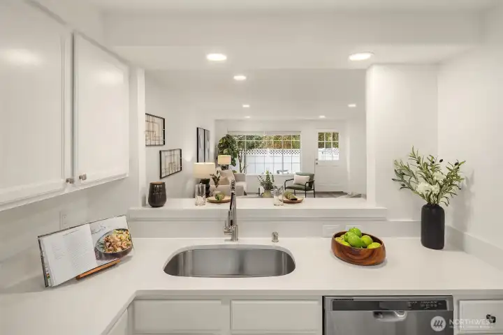 Extensively renovated townhome within the charming Springbrook Square community of Juanita. Inviting main level features a bright open layout. Spacious family room with wood burning fireplace opens to a private, fully fenced rear yard backing to a tranquil greenbelt setting. Updated kitchen features new stainless appliances, quartz countertops and a cozy breakfast nook. Convenient pass through to the dining room also offers additional bar top seating. Upper level with two generous ensuite bedrooms with ample closet space and modern baths. Thoughtful updates include new laminate flooring and interior paint throughout. Attached 2 car tandem garage with EV charging. Low HOA dues and no rental cap! Quiet, convenient location with easy access to the shops and amenities of Totem Lake and Juanita Village not to mention the waterfront recreation at Juanita Beach Park. Pre-inspected, turn-key condition!