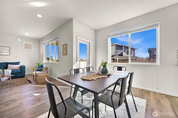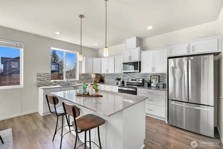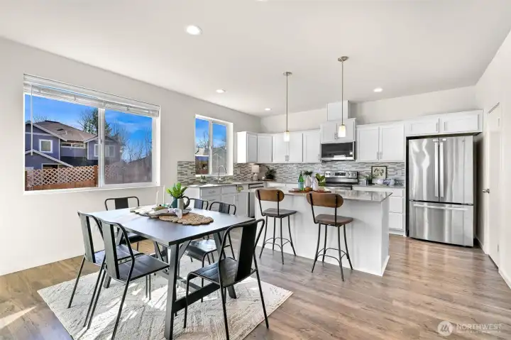 Welcome home! Better than new construction, this home is in the sought-after Malloy Terrace neighborhood & checks all the boxes! With 4 bedrooms, 2.5 bathrooms, + a flexible bonus space upstairs, the layout is both functional and inviting, with natural light pouring in throughout. As you step inside the home, you will find a generously sized guest bedroom and a 3/4 bath with a walk-in shower. Continue down the hall into the heart of the home; an open-concept living, dining, and kitchen space functionally designed. The kitchen offers ample storage, a walk-in pantry, upgraded stainless steel appliances, including a brand new dishwasher, & plenty of room to cook and entertain. Just off the dining area, step outside to a fully fenced backyard featuring an expansive multi-level deck with hook ups for a hot tub. This backyard is ideal for hosting summer BBQs, relaxing evenings, or enjoying time with guests! Upstairs, you’ll find a spacious bonus area that could easily be a playroom, media room, or second living area. The large primary suite has with a roomy ensuite bath, a large walk-in closet, and peek-a-boo views of Mount Baker on clear days. Two additional bedrooms, a full bathroom, and a conveniently located laundry room, with a brand new washer and dryer included, will complete the upper level. With a two-car garage and a location just one minute from I-5, and a short drive to downtown Ferndale, local schools, and a quick drive to Bellingham, this home is an absolute must see!