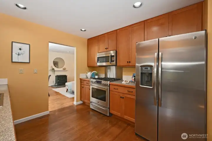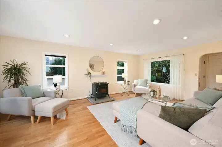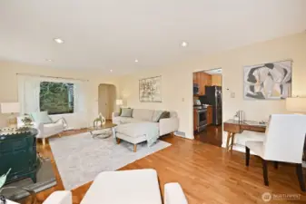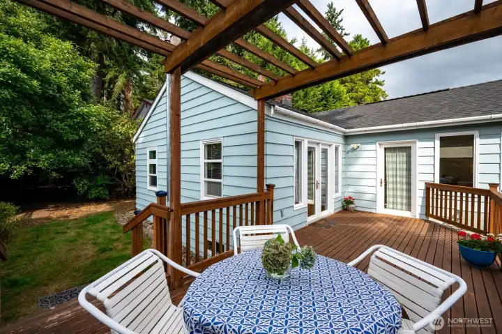 Welcome to this light-filled urban retreat perched up a private drive. The spacious living room, with sparkling hardwoods & cozy pellet stove, is wrapped with large windows & French doors leading to a sizeable deck surrounded by flowering, mature gardens. Tall windows also grace the formal dining room, which can transform into a 3rd bedroom or family room. For over 28 yrs the owners enhanced this 2BD/2BA + Office main house with updates: tile floors, new carpet & paint, new bath downstairs, amazing storage, & newer roof. The multi-leveled, fenced yard with patio provides tranquility mixed with nature. The shed is perfect for gardeners. A legal, detached ADU, 1 BD/1BA, full kitchen, new fridge, W/D, hot water heater & Pvt Ent provides incredible income. Plenty of off-street parking & space for a boat. Close to 3 Light Rail stations, buses, restaurants & businesses - yet tucked away.