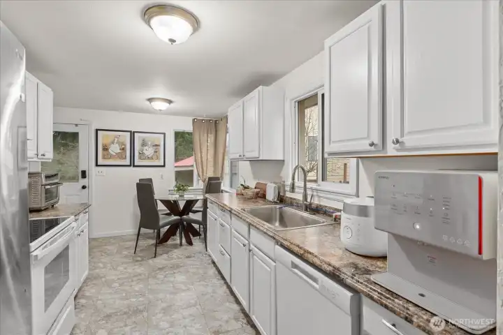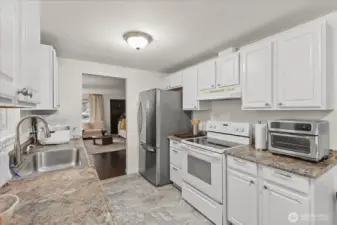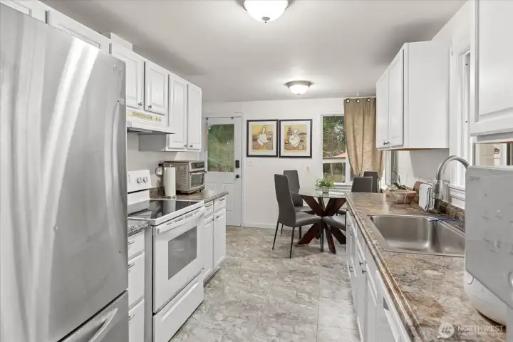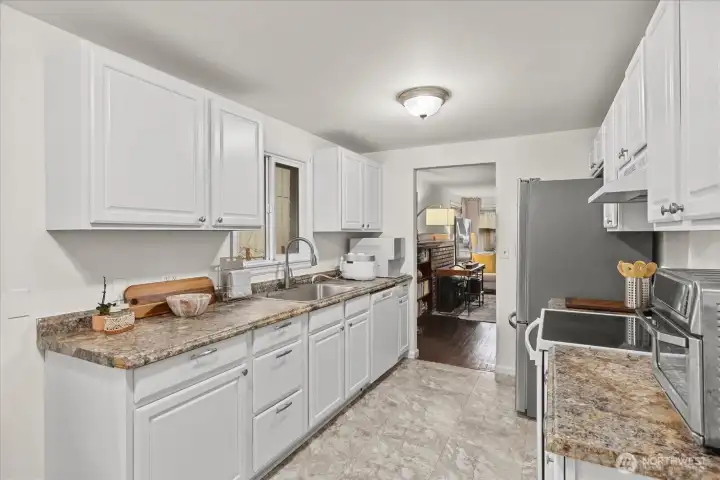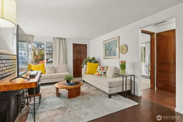 MUR-45 zoning just blocks from the Shoreline North/185th Light Rail Station—this North City property presents a rare blend of immediate livability and long-term potential in one of Shoreline’s most dynamic growth corridors. The level lot offers compelling redevelopment opportunities while allowing you to enjoy the home today. The thoughtfully designed 2-bedroom, 1-bath residence is move-in ready and enriched with architectural charm. Expansive corner windows invite abundant natural light, creating bright, airy living spaces that feel both open and welcoming. Hardwood floors extend throughout, while the generous living room anchored by a classic fireplace offers warmth and character. The sunlit kitchen and fresh interior updates provide a refined, polished aesthetic. A detached garage with remote access adds both convenience and flexibility. Outdoors, the fully fenced backyard unfolds as a private sanctuary, complete with three mature fruit trees, dedicated garden space, and patio ideal for year-round entertaining. Equally suited as a primary residence or investment, the home enjoys exceptional walkability to light rail, parks, dining, and neighborhood amenities, with seamless access to shopping and I-5. highly rated schools! Live beautifully now while securing your place in Shoreline’s evolving future.