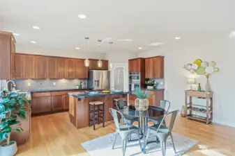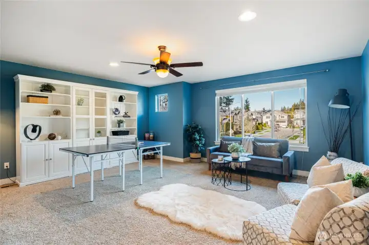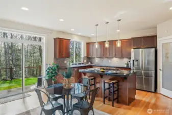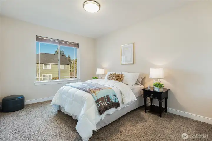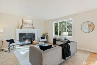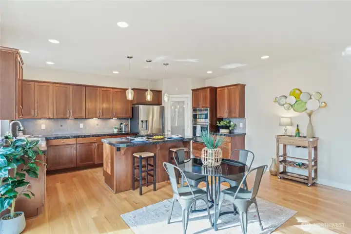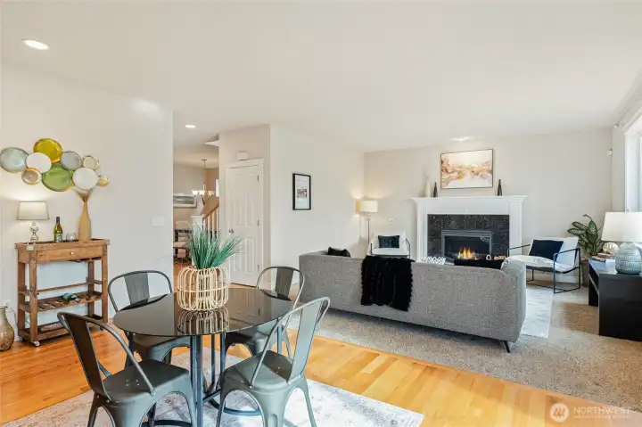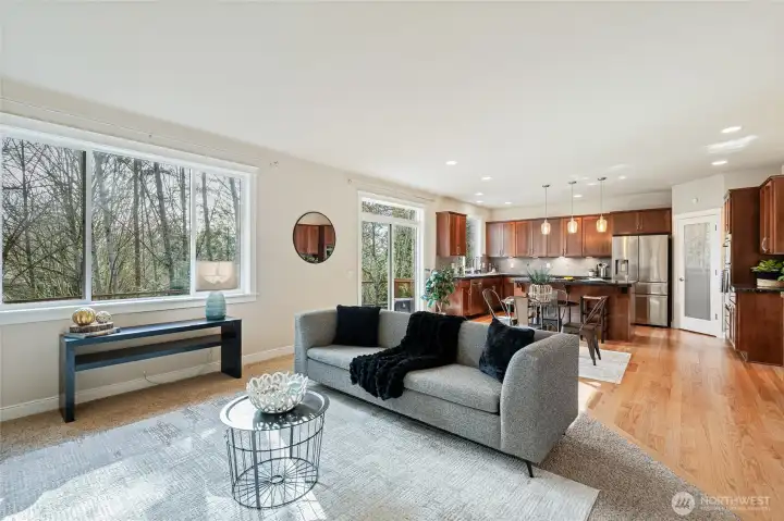 Beautifully maintained large 3 bedroom, 2.5 bath home offering a desirable open floor plan with Mt Rainier and greenbelt views. Ideally positioned on a private end lot in a quiet location, this home offers perfect commuter accessibility with added privacy in a peaceful setting. Hardwood floors welcome you through the entry and continue into the dining and living rooms where a gas fireplace creates a warm focal point. The chef inspired kitchen features cherry cabinetry, a generous granite island with gas range, newer stainless steel appliances, walk in pantry, and an eating space that flows seamlessly into the main living area. A sliding glass door connects indoor and outdoor living, opening to an expansive patio ideal for entertaining or relaxing. The main level includes a dedicated office/studio space, while upstairs, a spacious bonus room provides flexibility for guests, work, media, or play. The primary suite offers a ceramic tile bath with an upgraded large walk in shower and dual walk in closets. Two additional bedrooms, a full bath, and an open loft sitting area complete the upper level. Durable Hardi Plank siding with stone accents enhances curb appeal, while modern comforts include A/C, gas furnace and heat pump, and an attached two car garage. Ideal commuter location with easy access to i5, i405, and Green and Orange rapid transit lines. A rare blend of privacy, functionality, and views.