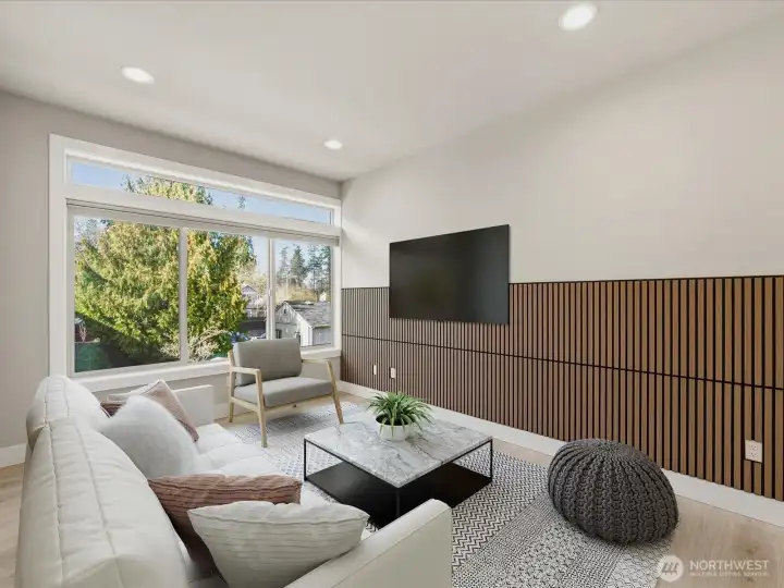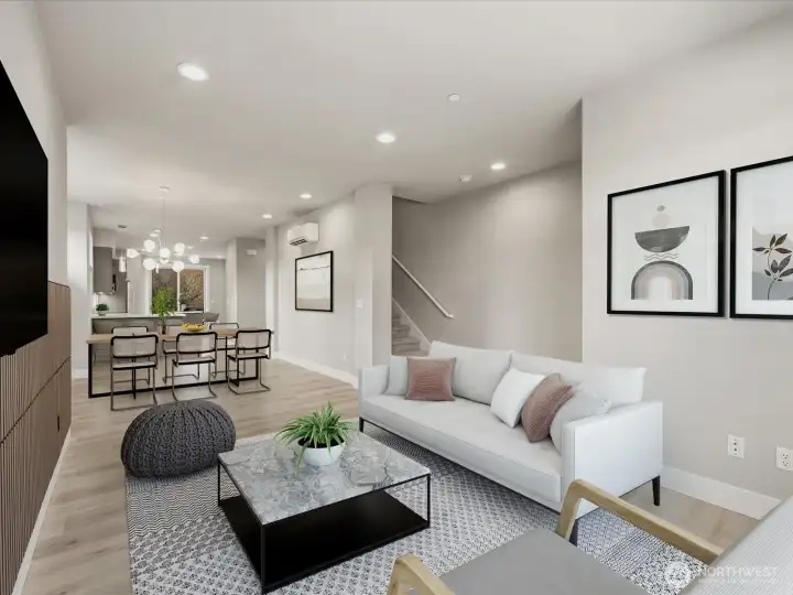 Modern, meticulously maintained townhome with 10’ ceilings, wood-wrapped windows and doors, designer trim, and hardwood laminate flooring throughout the main level. High-speed fiber (Cat-5) wiring provides seamless work-from-home capability. Open-concept living with 8’ slider off the kitchen leading to a private balcony for indoor-outdoor flow. Primary suite features a walk-in closet and ensuite bath with undermount sinks and frameless glass shower. Ductless mini-split systems on each level provide efficient heating and A/C. Recirculating hot water pump for instant hot water. Luxury carpet and upgraded padding on upper level. Flush-mounted fire sprinkler system. Built-in EV charger. Oversized 2-car tandem garage with additional shop/storage space. Low HOA Dues under $65.00. Convenient access to downtown Edmonds, I-5, SR-525, I-405 Highways, Alderwood Mall Shopping, Edmonds Ferry, Trails, Restaurants, Gym, Boeing and Paine Field, Lynnwood Transit center. One of the best located townhomes and communities in the area. Book a showing!