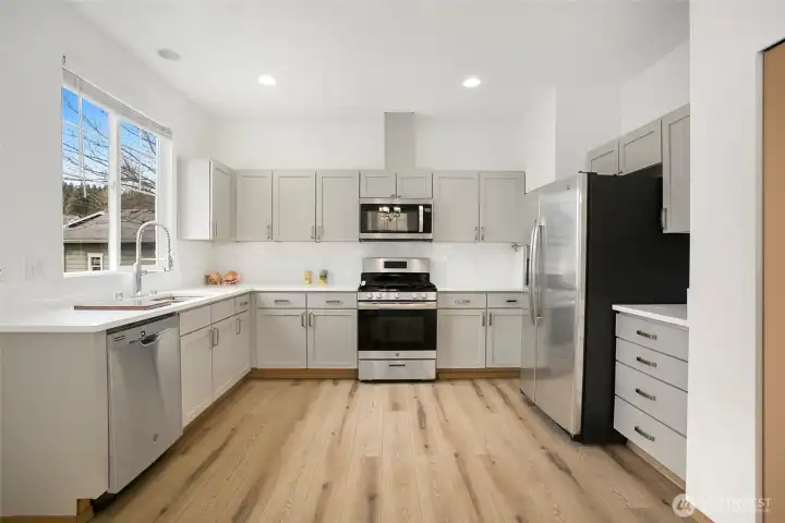 Located on a quiet cul de sac in Greenbrier Heights, this updated 4 bedroom home combines comfort, style, and convenience. Just minutes from downtown Woodinville, the Wine Warehouse district, shopping, restaurants, and freeway access, it offers easy access to everything while maintaining a peaceful setting. The main level features a welcoming Great Room with a gas fireplace and durable LVP flooring, plus a kitchen with an island, slab granite counters, and stainless appliances. Upstairs, the spacious primary suite includes a private 3/4 bath and walk-in closet, while three additional bedrooms share a full bath. Recent updates include fresh interior paint, new flooring, updated finishes, and a new roof, with pre-inspection completed and repairs made. A fenced backyard and attached 2 car garage complete this move-in-ready home.