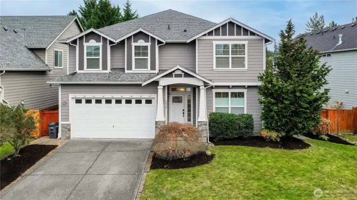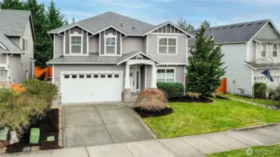 Originally a model home in the coveted Meadows at Rock Creek, this spacious 3,065 sq ft home offers 4 bedrooms, 2.75 baths, a main-floor office, and a huge bonus room with space for everyone. The open floor plan is ideal for entertaining, featuring an oversized kitchen that flows seamlessly into the great room. The kitchen has been beautifully updated with new quartz countertops and backsplash, all new stainless steel appliances, soft-close cabinetry, and updated black hardware for a fresh modern look. Fresh interior paint and new A/C make this home truly move-in ready. Upstairs you’ll find generously sized bedrooms and a large bonus room perfect for a media room, playroom, home gym, or additional flex space. The spacious primary suite is a true retreat, complete with its own fireplace, a 5-piece bath with dual vanities, soaking tub, and a large walk-in closet. Outdoor living shines with a remodeled patio and side yard with pavers, a new backyard fence with arbor, and room to entertain or relax. The home backs to a small park and is located close to 4 Corners amenities, great walking neighborhoods, and award-winning Tahoma High School district.
