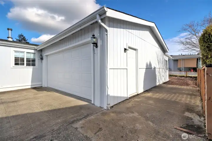 This is a really nice turn-key home in upscale 55+ mobile home park, Christmas Village. This 2-bedroom, 2-bathroom home has everything you are looking for - central air conditioning, 6-yr-old heat pump, almost new refrigerator and oven, newer paint, a fully-fenced back yard, AND a beautiful 2-car attached garage! There is even a finished hobby room off of the garage with a sliding door and built-in shelving - perfect for that hobbyist in you. There is RV parking if you need it, and a nice shed in the back yard for your yard tools, or just additional storage space. Come enjoy all of the amenities of Christmas Village - it is a friendly, walkable community near shopping, Walmart, and the hospital. There is a community gathering space with a horse-shoe pit and a clubhouse. All ready for YOU to turn it into your next home!