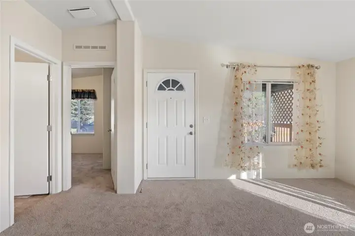 Nestled in the heart of Oak Harbor’s highly desirable Western Village—a peaceful, 55+ community—this beautifully maintained home offers comfort, accessibility, and easy living. Enjoy a bright, open layout with brand-new carpeting throughout, featuring 2 bedrooms and 1¾ baths in a thoughtful split-bedroom design for added privacy. The spacious primary suite includes a walk-in shower and walk-in closet for everyday convenience. The home’s large kitchen and dining area provide plenty of room for entertaining, while the covered front deck and accessibility ramp add both charm and functionality. A dedicated laundry area (washer and dryer included) and an outdoor storage shed offer extra space and practicality. Set along a quiet, non-thoroughfare side street with minimal traffic, you’ll appreciate the peaceful setting and small grassy areas in both front and back yards. Just minutes from grocery stores, medical centers, and all that Oak Harbor has to offer. Please note: Buyers must apply for residency approval through Western Village Estates LLC.
