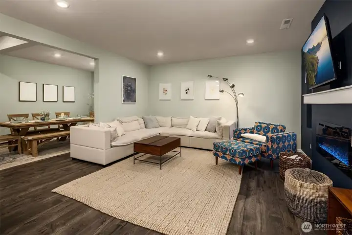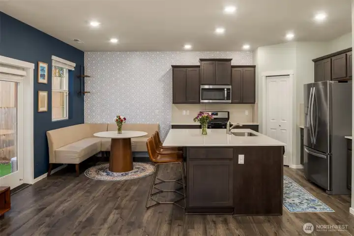 Welcome to The Timbers. Built by DR Horton in 2021, this Cambridge model offers a spacious open-concept layout with LVP flooring throughout the main floor, an expansive dining area, and a large kitchen featuring an oversized island with quartz countertops and stainless steel appliances with a gas range. Upstairs you’ll find four bedrooms and a generous bonus space perfect for entertaining, working from home, or relaxing. The primary suite overlooks a peaceful greenbelt and includes a spacious five-piece bath. Enjoy the fully fenced backyard with professionally installed turf and a concrete patio offering low-maintenance outdoor living and added privacy. Additional features include air conditioning and smart home technology. Located just a short walk to Lake Stevens High School, community playgrounds, and only five minutes from both Frontier Village and Downtown Lake Stevens, with easy access to Highway 92 for commuting.