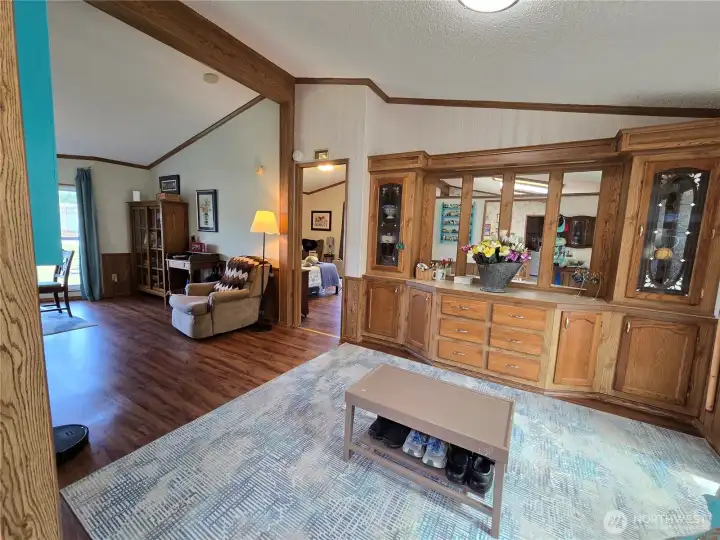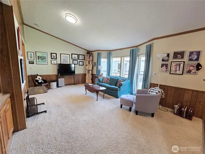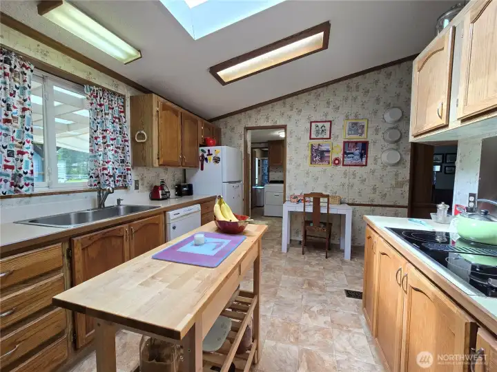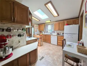 Welcome to this beautifully maintained 3-bedroom, 2-bath double wide manufactured home offering 1,782 sqft of comfortable living space on a generously sized lot with lush, mature landscaping. Located at the end of a cul-de-sac in a quiet, 55 and older park, this home combines privacy, functionality, and charm. Step into a large entryway featuring built-in shelving, that flows into a spacious dining area, perfect for gathering. Large on-suite with a jetted tub, double vanity, and skylights. More skylights in the kitchen, bringing in lots of natural lighting. Enjoy the spacious deck, perfect for entertaining or unwinding. The ramp access makes for easy entry into the home. Detached 1 car garage