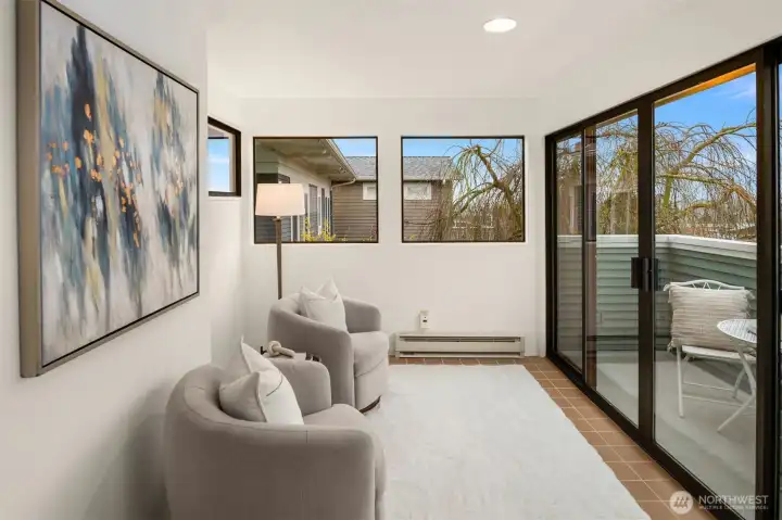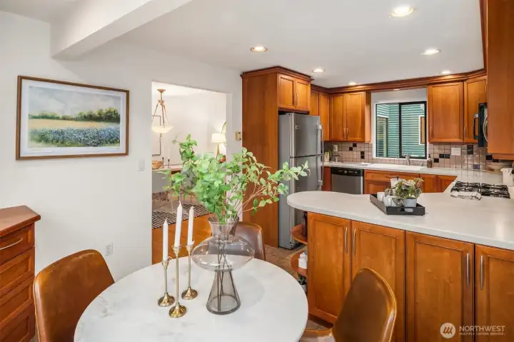 Perfectly sited a half block from “The Ridge”, this Phinney home reflects exceptional pride of ownership throughout, having been meticulously cared for and loved by the same owners for nearly 40 years. A classic and highly desirable layout places the living, dining, and kitchen spaces on the main level, creating an easy, natural flow for everyday living and entertaining. Just off the main floor, a covered deck extends your living space outdoors, making it an ideal spot for year-round al fresco dining and gathering in any season. Upstairs offers three bedrooms, including a peaceful primary en suite featuring a charming south-facing sunroom filled with natural light - the perfect place to read, work, or unwind. Step onto the private balcony for fresh air and glimpses of Green Lake and the snow-capped Cascades. Outside, enjoy a fully-fenced backyard for pets and play, with sunny southern exposure, dalhia beds, and additional garden space. The detached garage offers secure and easy parking with convenient alley access. Recent updates include fresh interior paint and a brand-new roof, offering you peace of mind and move-in-ready ease. Spend weekends exploring your neighborhood full of vibrant restaurants and cozy coffee shops, making spontaneous dinner plans, morning coffee runs, and weekend strolls around Green Lake part of everyday life. Full of community energy and just blocks from the Phinney Neighborhood Association’s beloved community center, this is city living at its best.