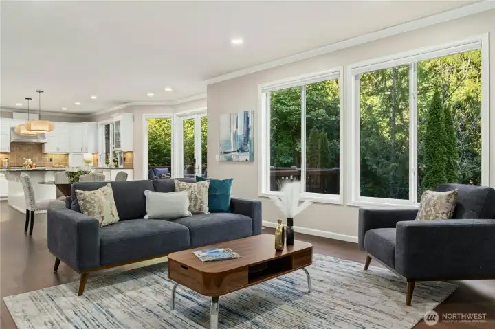 Luxury living located to get the best of both worlds from prestigious Sammamish & Redmond! Adjacent to the park of the coveted Hidden Ridge Community, this Stately home is minutes from MSFT, Space X, Marymoor Station, P&R, Redmond TC, Costco, Sahalee Golf Club, etc. Boasts 6 beds/4.5 bath built with impeccable craftsmanship of renowned builder John Buchan. 125 worth of upgrades include Premium Craft Artisan Wood Floors, new paint throughout (interior/exterior/deck), remodel of kitchen & family room to contemporary styling. Main level flows seamlessly with living/dining/kitchen/family/office in most desired open layout & high ceilings. Upstairs 4 beds+3 bath + laundry. Fully finished basement with large family room that could convert to media/game +1 Bed & Bath (potential for renting out separately due to alternate entrance). Relax & entertain on a huge deck in a private yard. Highly Ranked LWSD schools! Inspected & move-in ready!