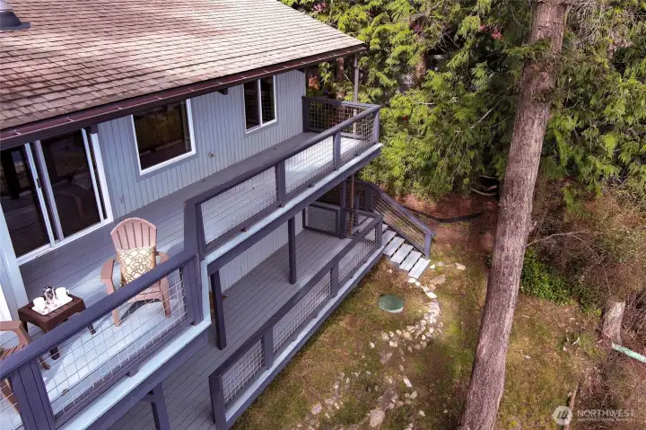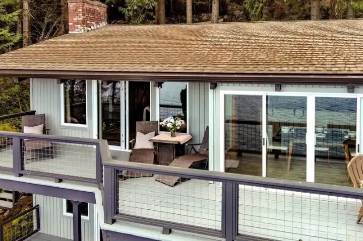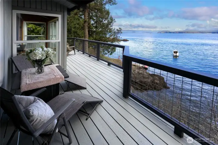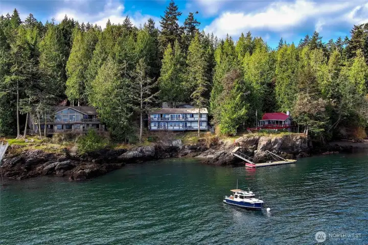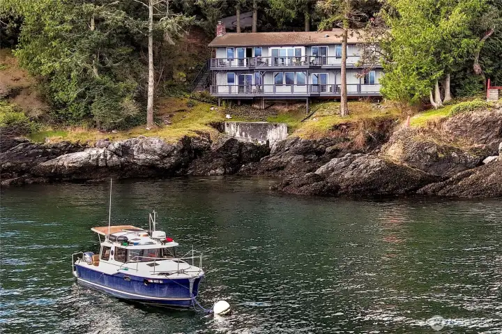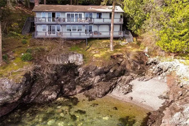Leave the world behind as you descend to your seaside retreat. This spacious, updated home offers stunning panoramic marine views of the San Juan Channel, Orcas Island, and Shaw Island, along with world-class wildlife! Nestled on a forested .95-acre waterfront lot, you’ll be just steps away from your own private beach, perfect for kayaking, fishing, or taking a refreshing dive.The mid-century home features lovely vaulted ceilings and a cozy wood-burning fireplace, making it perfect for relaxation. You'll love the large decks that invite you to enjoy the great outdoors. The updated kitchen is a chef’s dream, complete with granite countertops, stainless steel appliances, and plenty of space to prepare your favorite meals while soaking in breathtaking views. The thoughtful floor plan includes two separate living areas, with the main floor offering two bedrooms, two bathrooms, a cozy den, office, and a convenient laundry area that even includes a dog bath for easy clean-up! The lower level serves as a welcoming guest retreat, featuring a living space, a wood-burning stove, a kitchenette, a bonus room, and a bathroom. A detached two-car garage provides additional storage, and fiber internet is available for work or play. Enjoy access to a community beach, hiking trails, and water sports, and proximity to Roche Harbor Marina and Resort, Friday Harbor town amenities, restaurants, hospital, and a nearby shellfish farm. Wonderful island retreat or a primary home.