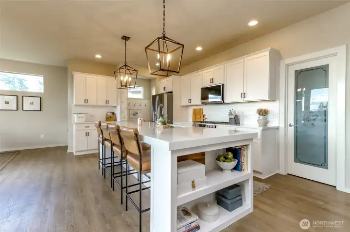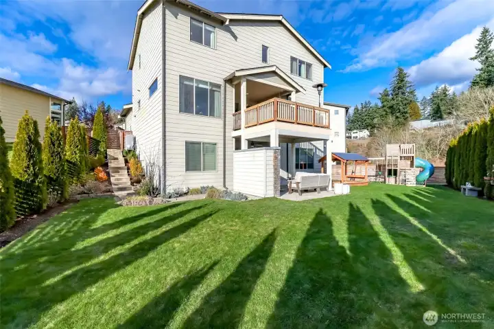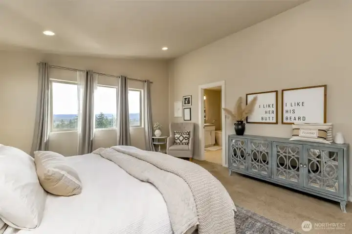 All square footage is not created equal. The offering of this exceptional Edgewood view residence delivers refined living across three fully finished levels. Thoughtfully designed for flexibility and elevated entertaining, the home blends luxury finishes with spaces ideal for multigenerational living. The main level showcases an open-concept kitchen, dining, living area and coffee bar designed for gathering and making memories. Complemented by a ¾ bath, mudroom, and private den or guest suite. Expansive outdoor living extends seamlessly from the interior, creating a true indoor-outdoor experience. Upstairs, the grand primary suite offers a retreat-like setting with a spa-inspired bath and generous proportions. Two additional oversized bedrooms, a full bath, and a spacious laundry room with utility sink provide both comfort and function. The lower-level lives as private quarters, featuring open living space, a full bedroom and bath, and a stunning covered stamped-concrete patio with outdoor gas fireplace—perfect for extended living, long-term guests, or private retreat space. Beautifully designed grounds provide privacy and tranquility. Sweeping views of the mountains, sound, and city are captured from every floor. High-end LVP, crisp white millwork, shiplap detailing, custom railing, clean white quartz, and designer ceramic tile reflect quality craftsmanship throughout.