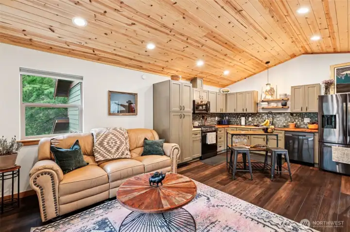 This stunning custom-built 2023 Craftsman sits on 1.23 private, level acres — move-in ready and full of possibilities. Inside, the upper living level showcases exceptional craftsmanship: vaulted ceilings with pine tongue-and-groove detailing, knotty alder doors and trim, butcher-block countertops, soft-close cabinetry, a propane fireplace, and a spacious walk-in closet. The main level offers a private guest suite with a half bath, perfect for visitors or a home office. Also on the main floor, a massive 40x17 fully insulated shop with an 18-foot ceiling, 6-inch concrete slab, and lift-ready wiring — a dream setup for any car enthusiast or mechanic — paired with a separate 22x17 insulated garage. Rounding it all out: RV parking with hookups, two storage sheds, a dog kennel with an interior dog door, a metal roof, a custom security system, generator wiring, and a 3-bedroom septic that leaves the door wide open for a future addition or mother-in-law suite. Completely private. Nothing else like it