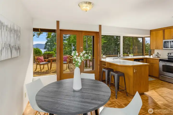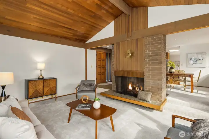 Perched in Bellevue’s coveted Bretton Wood neighborhood, this striking Mid-Century retreat frames breathtaking lake vistas through walls of glass—architecture doing what it does best: making nature the art. Clean lines, warm woods, and signature period details set the tone, while fresh interior paint, new carpet, and beautifully refinished hardwoods give you a crisp, move-in-ready starting point. The light is exceptional—sunrise coffee, golden-hour gatherings, and evenings spent watching the water. Curated for both privacy and panorama, the design creates two experiences: a dramatic view-side entertaining deck where the lake steals the show, and a separate yard that feels wonderfully secluded—quiet and flat with room to exhale. Thoughtful updates keep things comfortable today yet leave room for your next chapter. Mid-Century purists, this is your moment. A rare opportunity to own an authentic architectural statement with views that never get old, in a location that keeps you close to parks, amazing schools, and the best of Bellevue.