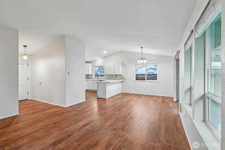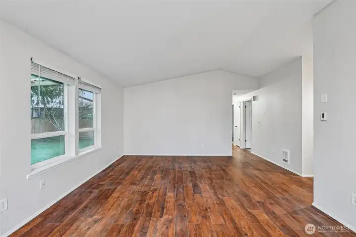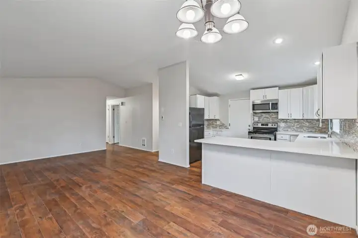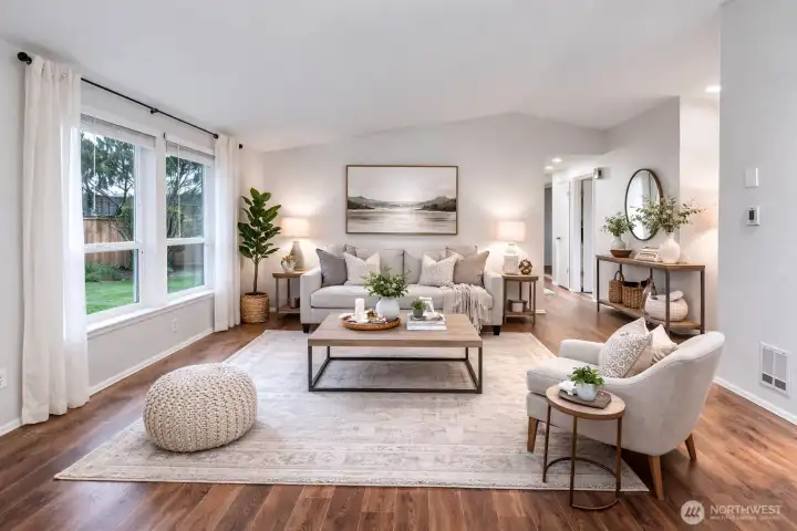 Welcome to this inviting home offering comfortable single level living in a highly convenient location. Designed with a functional layout, the interior features durable vinyl plank flooring throughout, creating a seamless and modern feel. The spacious living, kitchen with bar, and dining areas provide flexibility for everyday living and entertaining, while abundant natural light enhances the warm, welcoming atmosphere. Set on a level yard, the property offers easy outdoor enjoyment, gardening potential, and practical accessibility. The usable lot provides room to relax, play, or personalize to fit your needs. Ideally positioned close to shopping, services, and commuter routes, this home combines comfort, simplicity, and convenience in one appealing package. Don't hesitate visit this lovely rambler today this home will not last long!