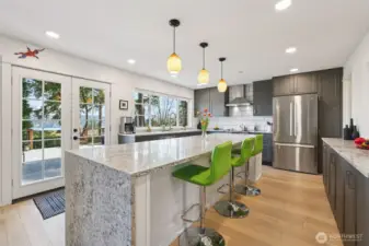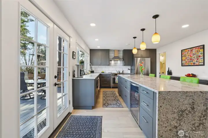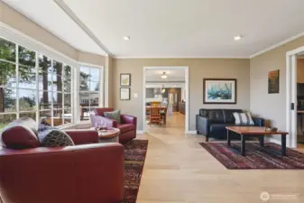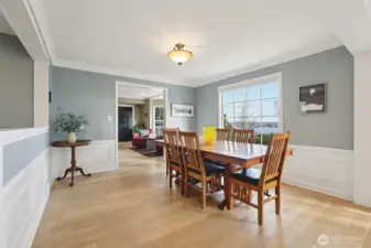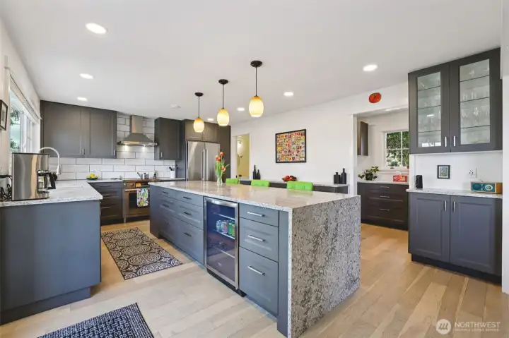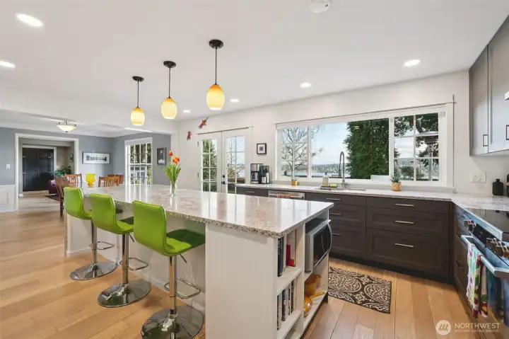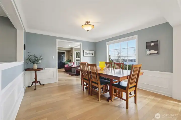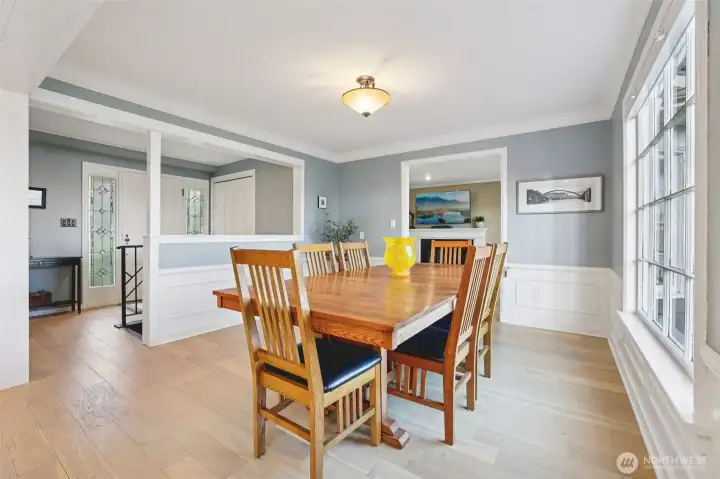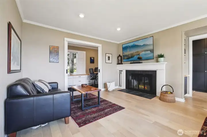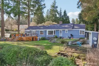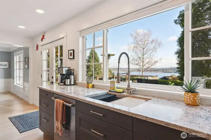 Rare opportunity in Sheridan Heights! This 1937 William Bain Bungalow comes with fantastic views of Lake Washington and the Cascade Mountains with deeded rights to the Sheridan Beach club. The main level offers an open floor plan with renovated gourmet kitchen, large dining space, living room with fireplace and period details including coved ceilings and original leaded glass windows. Seaplanes and snow capped mountains from nearly every eastern window will hold your attention. Two bedrooms on the main including a large primary, a renovated 3/4 bath, half bath, laundry room and pantry. Plus the tucked away office space with built-ins facing the tree lined street. On the lower level, a 3rd bedroom, adjacent full bath with heated floor, family room and storage. The large back yard is level and fully fenced. All new deck with long life composite treads, new tear-off roof in 2025 and gas forced air heat (2018). Coveted Shoreline Schools including Brookside Elem, Kellogg M.S. and Shorecrest H.S, all walkable. Or just a 10 minute stroll to the LFP Towne Centre and beach club. 10 minutes by car to I-5 and 148th Street and 185th Street light rail stations. Multiple busses 1 block away including the 522 express. A fantastic neighborhood with a true sense of community.