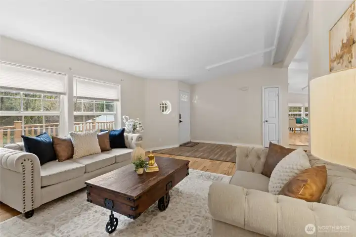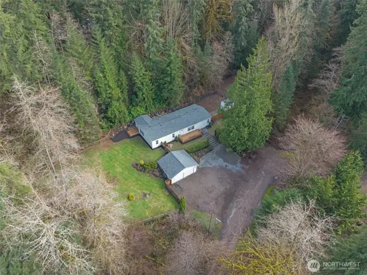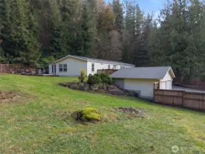 Escape to this gorgeous, light-filled retreat perfectly situated on 1.65 peaceful acres in Duvall. This home offers a seamless blend of natural beauty and functional design. The fantastic floor plan is anchored by soaring vaulted ceilings and expansive living spaces featuring classic hardwood floors. The heart of the home is a light and bright kitchen with abundant cabinetry and counter space, perfect for culinary enthusiasts. Retreat to the spacious primary suite, complete with a large walk-in closet and private ensuite bath. Two additional bedrooms, a full guest bathroom, and a convenient half-bath provide ample space for everyone. Relax in the sunroom or step outside to the fully fenced grounds, offering endless possibilities for play, vibrant gardens, animal pastures or hobby farm. The property is well-equipped with a two-car garage and two versatile outbuildings, providing excellent storage for hobbies or equipment. Whether you are wandering through your private acreage or enjoying the tranquil atmosphere from the deck, this is a rare opportunity to own a piece of paradise.