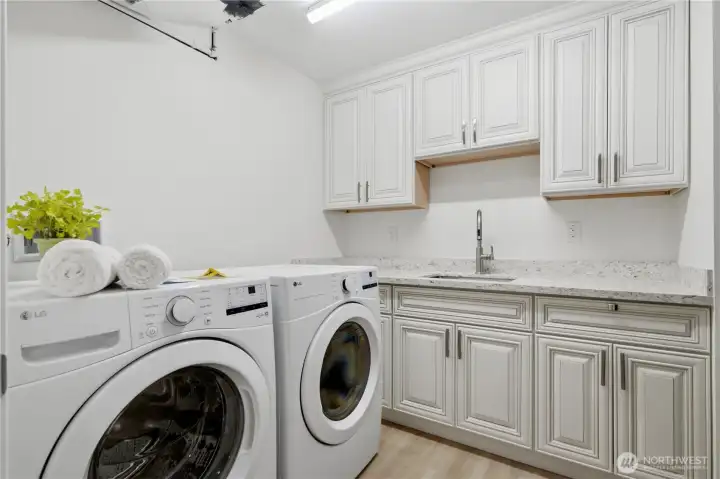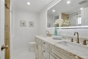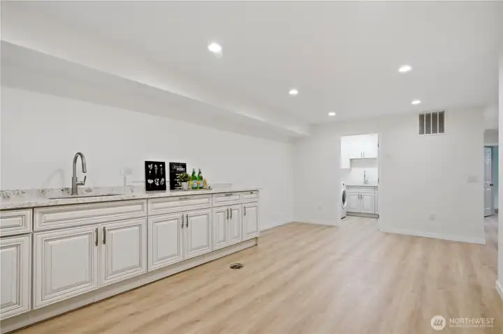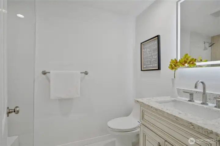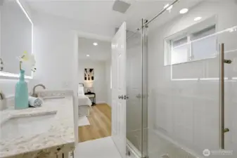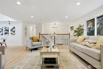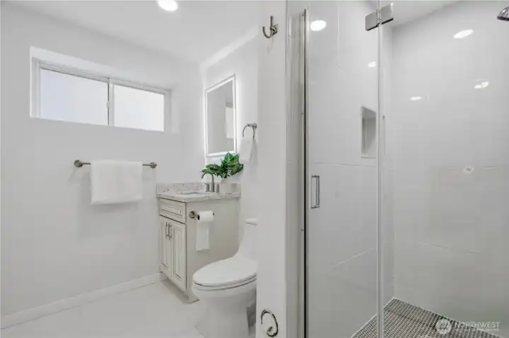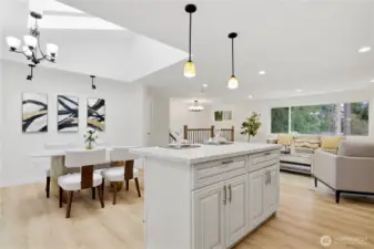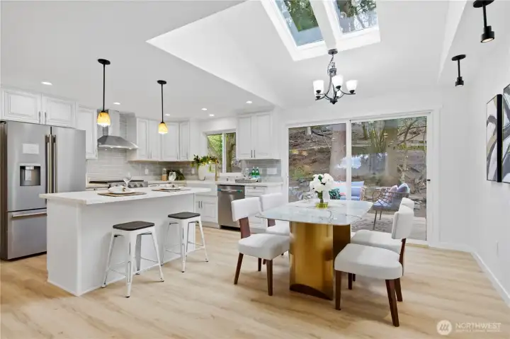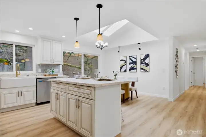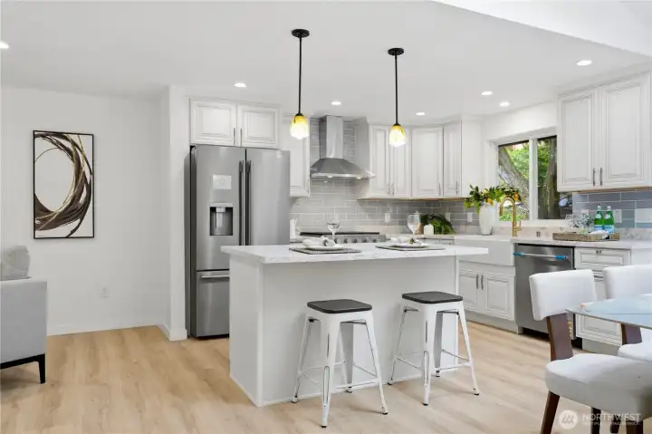 An extraordinary, fully permitted renovation showcasing refined craftsmanship and elevated modern design throughout. This stunning residence features all-new systems including furnace, appliances, drywall, interior and exterior paint, complete electrical rewiring, and new plumbing—offering true turnkey peace of mind. Brand-new windows flood the home with natural light, enhancing the sophisticated finishes at every turn. The spectacular chef’s kitchen serves as the heart of the home, featuring custom-designed cabinetry, elegant designer countertops, premium stainless steel appliances, and an expansive center island ideal for gathering and entertaining. The open-concept layout flows seamlessly into the dining and family rooms, creating an effortless blend of luxury and functionality. The lower level offers a spacious recreation room, additional bedrooms, and abundant storage. An ADU-ready kitchen space with prewired power and sewer line provides exceptional flexibility for multigenerational living or future rental potential. A spacious two-car garage with EV hookup adds modern convenience. Ideally located just six minutes from Downtown Bellevue with quick access to I-90 and I-405. Situated within the highly sought-after Bellevue School District, this home delivers luxury living in a premier location.