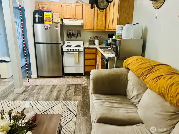 Updated cozy condo unit at the Sandpiper. 1 bedroom, 1 full bath with newer floors and counters and a washer/dryer in the unit. Close to Tucker Ave entrance. Community area for gatherings with picnic tables and chairs. Community workout room as well. Walking distance to Friday Harbor and all the town amenities including restaurants, theatres, grocery stores and schools.