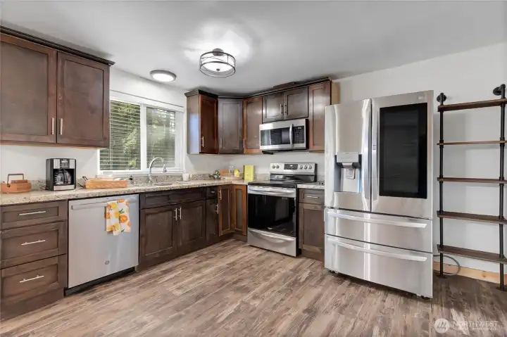 Well maintained 3 bedroom, 1.75 bath, 1647 sq ft home featuring recent updates throughout. Enjoy 2 wood fireplaces and a spacious, light filled floor plan with modernized finishes. The large kitchen is open to the dining and living room. Downstairs offer a spacious family room w/wood fireplace and a 3/4 bathroom. The large, fully fenced backyard offers excellent outdoor living with an expansive deck and fire pit, perfect for entertaining or relaxing. A two car attached garage plus additional parking provides added convenience and storage. This property offers an ideal blend of comfortable indoor living and inviting outdoor space.
