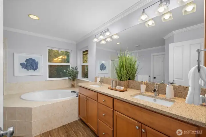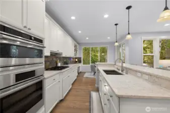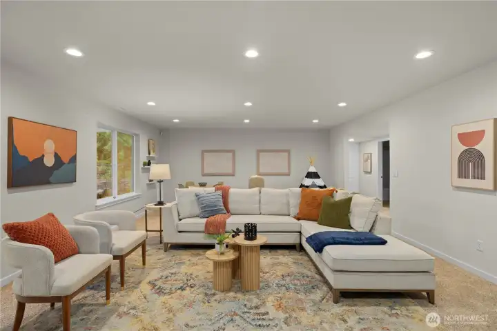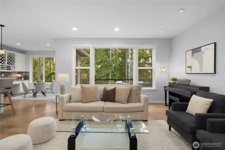Beautifully updated home in the desirable Northstar neighborhood of Education Hill. Offering 4,038 square feet of elegant, light-filled living space, this 5-bedroom, 3.5-bath residence seamlessly blends comfort, style, and privacy. The main level showcases an open-concept design anchored by a chef’s kitchen featuring a large island, quartz countertops, and abundant cabinetry. A versatile main-level den provides the ideal space for guests or a home office. Upstairs, you’ll find four spacious bedrooms plus a second office, including a luxurious primary suite with a spa-inspired bath and generous closet space—your private retreat at the end of the day. The expansive lower level includes an additional bedroom, full bathroom, a gym room and a large family room with built-in cabinetry, offering excellent flexibility for multi-generational living or extended guest stays. Step outside to a fully fenced, level backyard backing to a private greenbelt, creating a serene and secluded outdoor escape. The deck is perfect for relaxing or entertaining while enjoying the peaceful surroundings. Recent upgrades include a newer roof, tankless water heater, central A/C, updated kitchen appliances, fencing, and Trex decking—providing modern efficiency and peace of mind. Conveniently located just minutes from parks, trails, shopping, and major tech employers. Zoned for the award-winning Lake Washington School District.