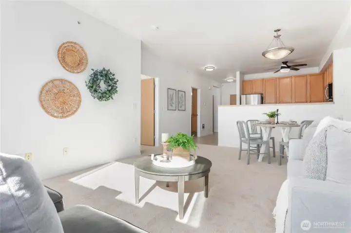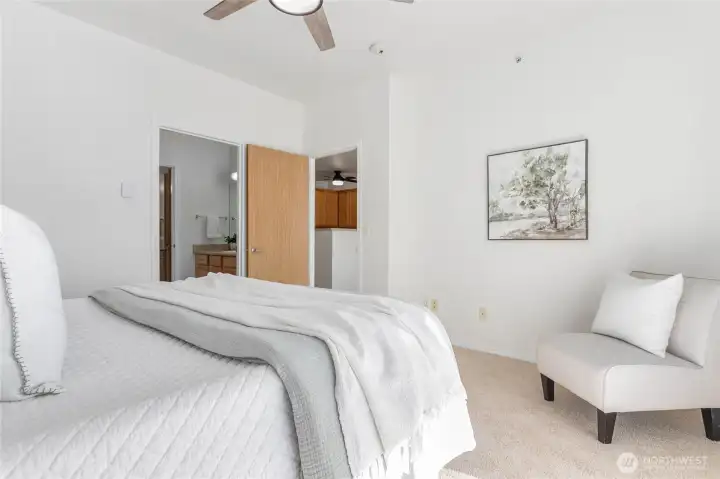Light and bright and move-in ready! This spacious one bedroom condo has it all! Brand new carpet and stainless kitchen appliances, freshly painted and other recent upgrades such as updated ceiling lights/fans, portable A/C unit, and a newer washer/dryer combo. This unit lives large with high ceilings, generously-sized windows, a walk-in closet, private balcony and a bonus/storage room that can be used as a home office. Enjoy the bright southern exposure year round from your private balcony, which is accessible from both the living room and the bedroom. This unit also comes with one of the highly-coveted covered parking spaces, and there is plenty of additional guest parking directly in front of the building. Darby Estates is conveniently located within minutes to several dining and shopping destinations, such as the new Trader Joe’s, Community Food Co-op, Costco, and Bakerview Square. Easy I-5 access. Whatcom Community College is less than one mile away. Perfect for a personal residence, but can also be rented as an investment property! NO RENTAL CAP! Don’t miss the beautifully landscaped grounds and fully-equipped clubhouse with a gym and entertaining space that can be reserved for private parties. This is the one you’ve been waiting for!