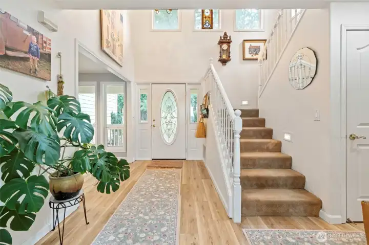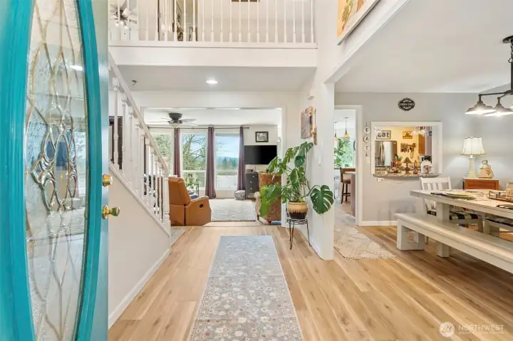 Battle Ground horse property & acreage home located in Clark County, Washington, offering 3.2 fully fenced acres with established infrastructure for hobby farming, gardening, and animal use. The home includes 3 bedrooms, 2.5 bathrooms, and approx 2,100 sq ft across a two-story layout. Interior updates include new LVP flooring on the main level and bathrooms, along with a kitchen featuring a gas stove, electric oven, and newer dishwasher. The primary suite includes a remodeled bathroom with jetted tub, updated shower, and new vanity. Additional living areas include a dedicated media room with surround sound wiring and a wood burning stove with Lopi Freedom insert, providing heating alongside a newer HVAC system. Exterior improvements are structured for usability and expansion. The barn includes four 10x12 stalls with heavy duty mats, a tack room, & workshop area that can be converted into additional stalls or storage. Supporting structures include a greenhouse, raised garden beds, potting shed, chicken coop, & multiple storage areas. The property also features a wraparound porch, updated decks, fire pit area with lighting, and ample parking including a 2 car garage and RV space. Served by well and septic systems, the property supports a range of rural uses under its zoning designation. Territorial and valley views, combined with usable acreage, create a practical environment for equestrian use, hobby farming, or lifestyle focused buyers seeking land in Southwest Washington.
