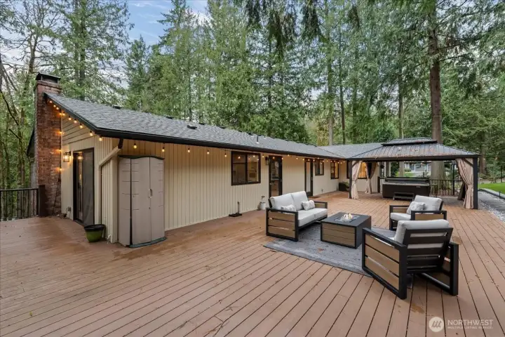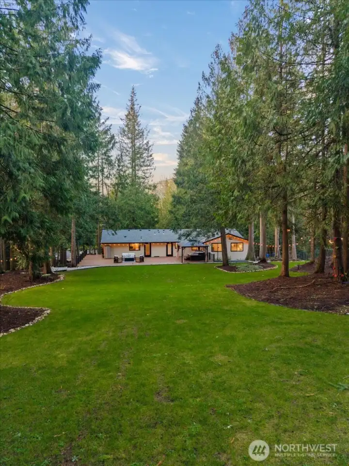 Exceptional Mirrormont home on over an acre of private, wooded grounds in the highly sought-after Issaquah School District. A grand timber-frame covered front porch creates a stunning Northwest arrival and welcoming first impression. Inside, soaring ceilings and abundant natural light—enhanced by a brand-new roof with expansive skylights—create a bright, open atmosphere that lives beautifully year-round.The updated kitchen features a gas cooktop and modern finishes, ideal for both daily living and entertaining. The spacious primary suite offers a private retreat with custom closet, spa-inspired ensuite bath, and direct access to the peaceful outdoor setting. Two additional bedrooms and a full bath complete the main level.The lower level with separate entrance offers incredible flexibility with a large living area, wood stove, two bedrooms, office, and bath—perfect for multigenerational living, guest suite, or home office. Major upgrades include a brand-NEW roof, new HVAC with A/C, new water heater, an automatic standby generator, and sprinkler-irrigated grounds—offering comfort, efficiency, and peace of mind year-round. Custom paver patios and gas BBQ hookup create ideal outdoor entertaining spaces. Enjoy privacy, nature, and modern comfort just minutes to Issaquah, trails, and amenities.