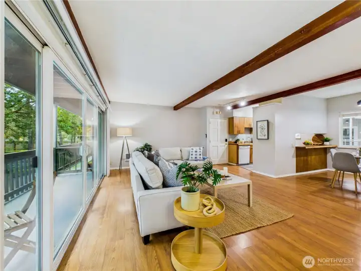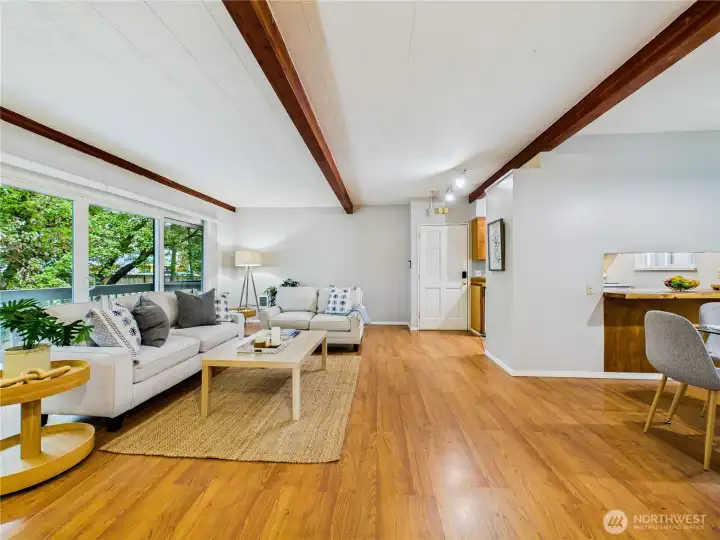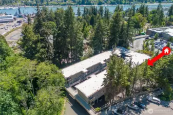 Location, Location, Location! Just .4 miles from your home to the Bainbridge/Seattle ferry terminal. With just a total of 28 units this rare 2-bedroom opportunity awaits you at "The Tillicum" in the heart of downtown Winslow! New for 2026 - a brand new metal roof and exterior paint! Investors - No Rental Cap! Located just literally steps away from all of the plentiful and diverse amenities in this quaint and peaceful town you will find a blended Bainbridge lifestyle full of adventure with a vibrant urban touch. A variety of shops to explore, restaurants to dine, wine to taste and a fantastic museum for the kids and adults alike. There is a public waterfront park and marina just down the road to enjoy year-round. This pleasant and maintenance free corner unit has a large deck to take in the urban energy of the town and convenient covered 2-car parking.