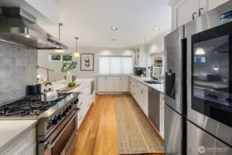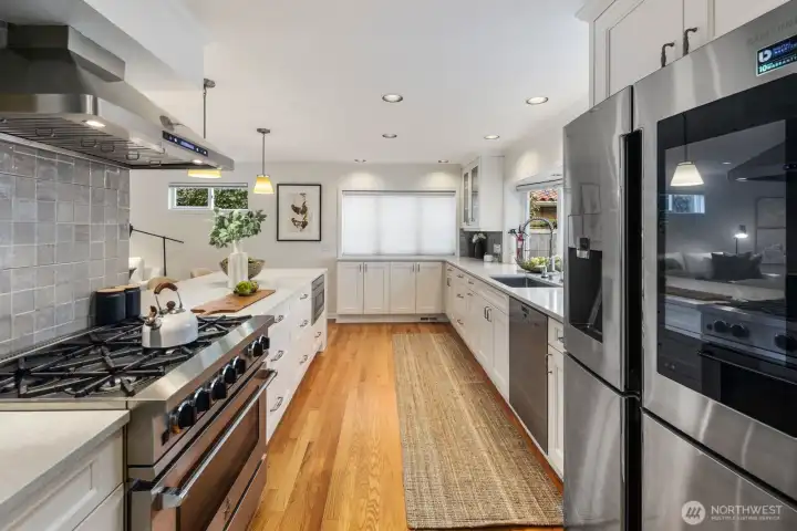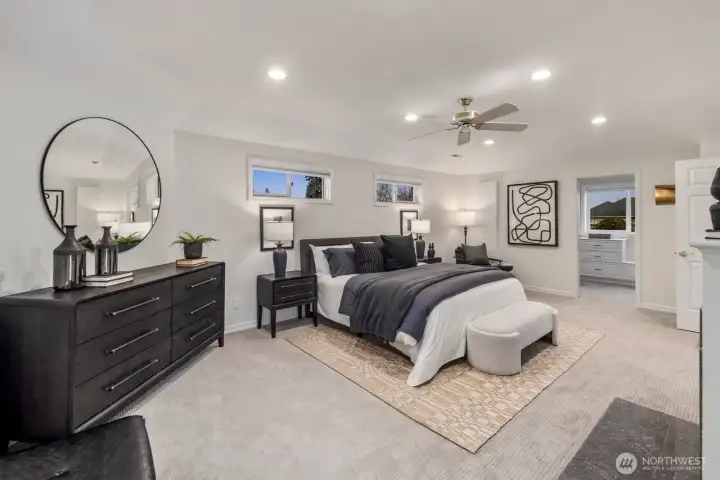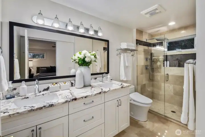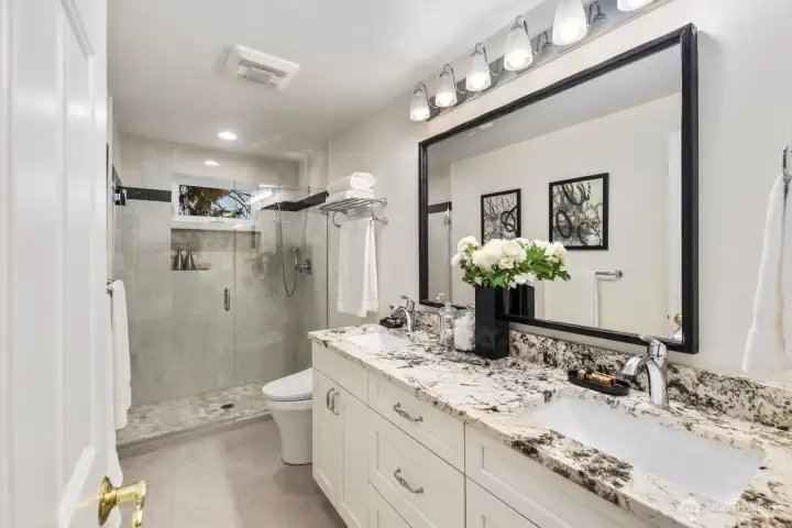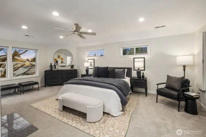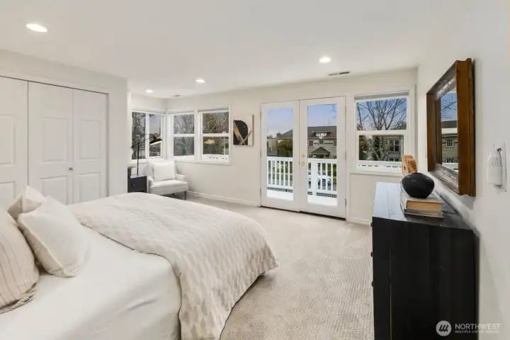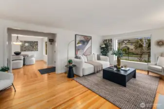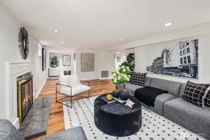 Inside one of Magnolia’s most cherished pockets, this beautiful home blends generous spaces, comfort, and quiet luxury. Sweeping, power line free views of Mt. Rainier and the Seattle skyline unfold from the upper floors and rooftop deck. Fresh interior paint, professional landscaping, newer roof, seismic retrofit, updated electrical and plumbing, and efficient heating and cooling provide a solid, well-maintained foundation. Perfect hardwoods and new carpet elevate the interior. A picture window anchors the living room, complemented by fireplaces in the living and family rooms, primary bedroom, and basement. A main floor bedroom and ¾ bath offers easy, no stairs access for multigenerational living. The large basement—with a full bar, ice maker, dishwasher, and entertaining space—sets the stage for movie nights or game day gatherings. The spacious backyard is ideal for multi-season entertaining, and fireside evenings. An attractive iron fence and automated gate secure the driveway play area, and the oversized garage offers 2 electric car chargers, and a service pit for automotive enthusiasts.