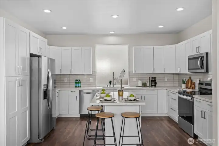 Beautifully maintained & updated, this Crosswater home lives like a single-family with a private fenced backyard, low-maintenance outdoor space & patio with firepit for easy entertaining, plus a 2-car garage. Move-in ready with a permitted upstairs addition, central A/C & a refreshed interior that makes the value feel immediate. Big-ticket updates already done for you include a 2024 gas furnace + central air, 2022 water heater, plus newer paint, flooring & carpet. The fully renovated 2024 kitchen is a standout with new cabinets, quartz countertops, stainless appliances & a center island with eating bar. The main level offers a front living & dining area plus an open kitchen & living room anchored by a cozy dual-sided gas fireplace, great for daily flow & entertaining. The custom upstairs layout offers 3 bedrooms, 2 full baths & convenient laundry. Two bedrooms are ensuite-style, including a roomy second suite with WIC & a full bath offering bedroom + hallway access. The spacious primary suite includes an updated 5-piece bath, WIC & attached flex space perfect for a work-from-home office, nursery, or workout area. Neighborhood amenities include miles of trails, tot lots & Boulder Park with open field, gazebo, playground & sport court. Minutes to Lundeen Park on Lake Stevens, plus shopping, dining & new nearby conveniences. Easy commuter routes via Hwy 9 with connections to US 2 and I-5. Desirable Lake Stevens schools support long-term value & future resale.