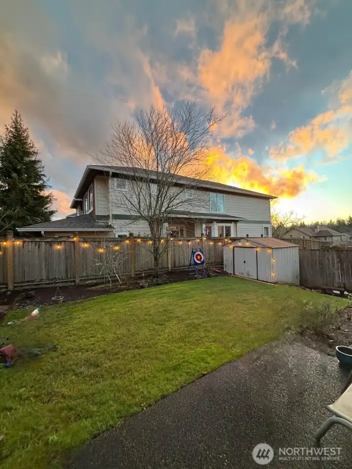 Major Updates + Premium Roof + A/C — Move-In Ready Sammamish Home in the Vintage Community. This beautifully updated home blends modern upgrades with comfort and flexibility, including a rare main-level bedroom with a ¾ bath—ideal for guests or multi-generational living. The refreshed kitchen features brand-new SS appliances (range, dishwasher, and microwave), refinished cabinetry, and elegant quartz countertops. Fresh designer paint brightens the entire home, while bathrooms are updated with quartz counters and modern mirrors. Premium luxury vinyl plank flooring enhances the main level, and bedrooms feature plush high-end carpeting. An oversized bonus room with warm wood flooring is perfect for a media or projector setup, while a dedicated meditation room offers a peaceful retreat or flexible workspace. A striking marble feature wall adds architectural character. Additional updates include a brand-new garage door and an updated downstairs vanity. Enjoy seamless indoor-outdoor living with a newly installed patio door leading to a usable backyard with garden space and a storage shed. Permanent smart roofline lighting enhances year-round curb appeal. Major systems include an energy-efficient heat pump with full A/C and a 2022 Owens Corning Platinum Protection roof with a transferable 50-year warranty. Walk to the neighborhood park and enjoy proximity to City Hall, YMCA, and the Farmers Market. Located in the highly rated LWSD Schools with convenient access to nearby bus stops.