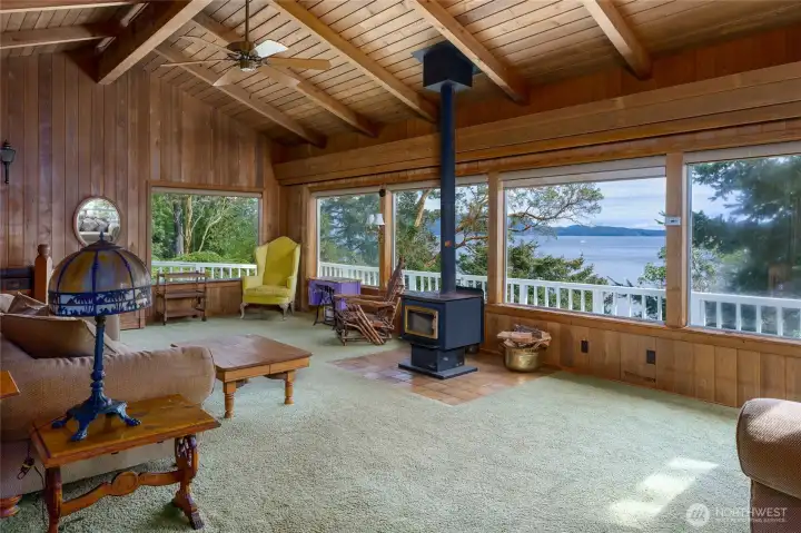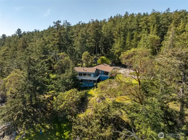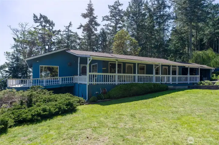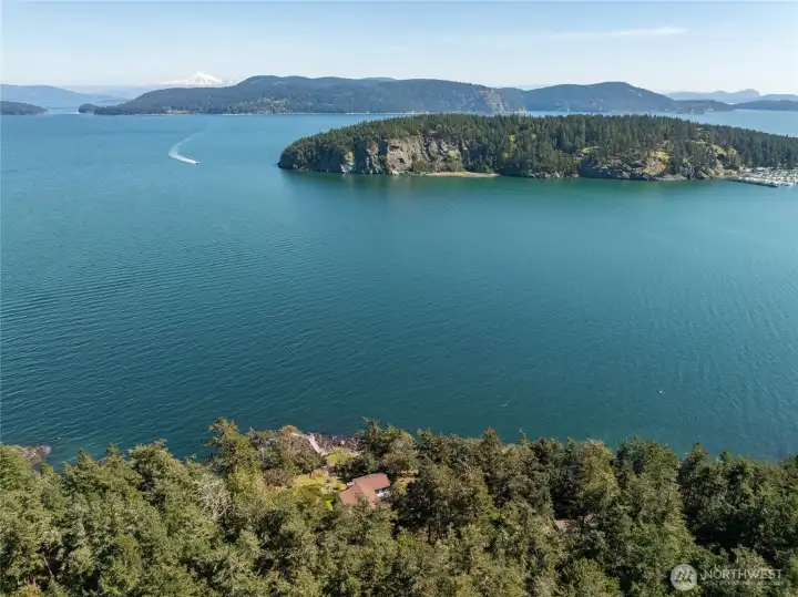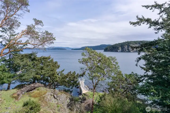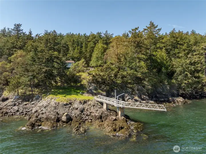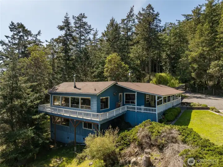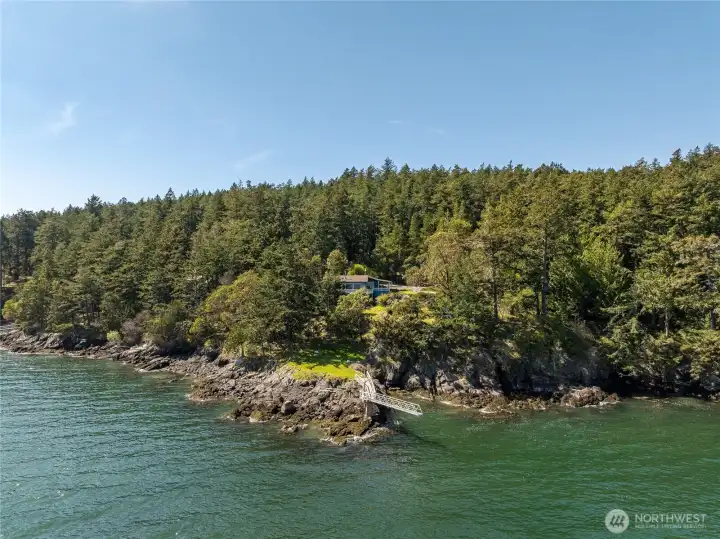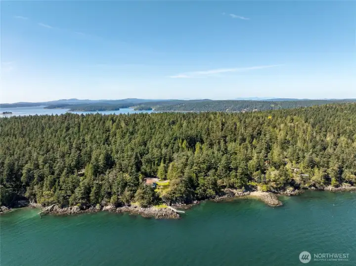 Nearly ten acres of terraced shoreline and mature landscaping, just a short stroll from the Lopez Ferry Landing. The centerpiece is a rare deep-water private dock with a 35-foot float, solid depth, power, and vehicle access for easy boat loading — a genuine rarity in the San Juans. (The float is currently stored off site.) The 1962 main house offers sweeping views of open water, mountains, and ferry traffic from 2,410 sf across two levels. A 600 sf waterfront cottage adds flexible space for guests, a studio, or a home office. Rounding out the property: a 960 sf detached garage and shop, two-car carport, chicken coop, fenced garden, dog run, and additional storage sheds. Two tax parcels, two wells, catchment with storage for irrigation, pocket beaches, a 20KW backup generator, and excellent privacy make this a self-sufficient retreat. Community Hilltop water and Rock Island fiber are available on the property but not yet connected — easy upgrades for the next owner.