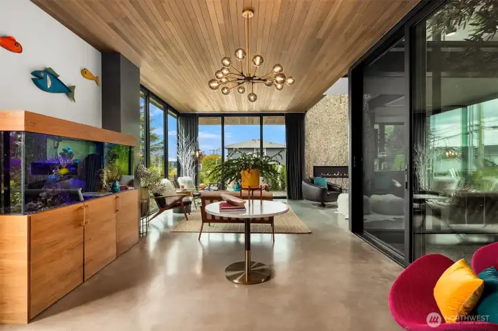 Rare culmination of modern & luxury artfully executed with custom details throughout. Floor to ceiling windows capture lake, city & mountain views while flooding the interior with natural light. Generous great room wraps a two-story atrium with tropical plants & bubbling fountain, integrating the sights & sounds of nature. 5 ensuite bedrooms, including a main floor guest & separate home office. Lower-level suite w/private entry offers MIL potential. Smart home features enable remote automation. Private yard with tranquil koi pond. Gorgeous landscaping surrounds the home with a rainbow of perennial color. Exceptional Lk WA schools & just steps to waterfront parks, shops & dining. Unsurpassed quality & design near desirable downtown Kirkland!